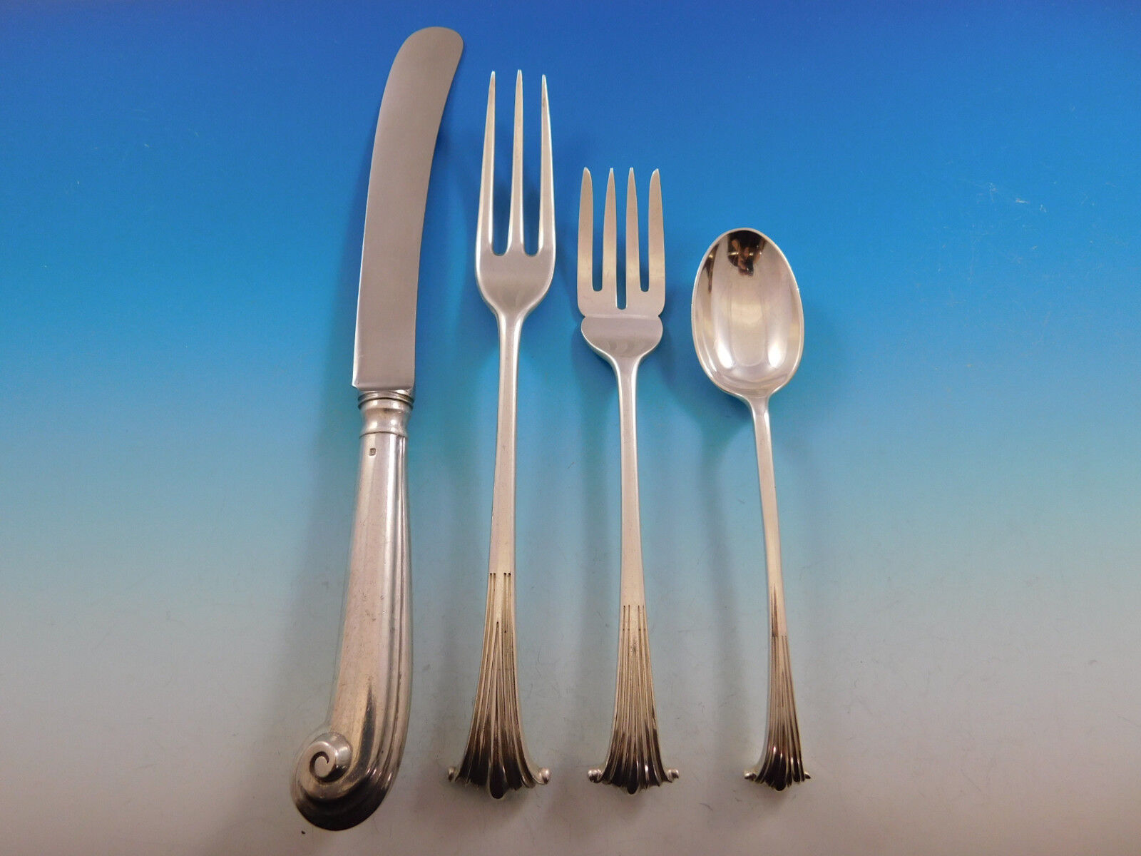 COMPLETE FLATWARE SETHOSTESS HELPERSHOLLOWWARE / TEA SETSMUSEUM QUALITY/FIGURAL SILVERFINE ESTATE VINTAGE JEWELRYMID-CENTURY MODERNSILVER FLATWARE SILVERWAREBuccellatiChristofleGeorg JensenNew Georg Jensen HollowwareNew Georg Jensen JewelryGorhamInternationalLuntMichael Aram - NewReed BartonTiffany Co.TowleWallaceWhitingPLACE SETTINGS