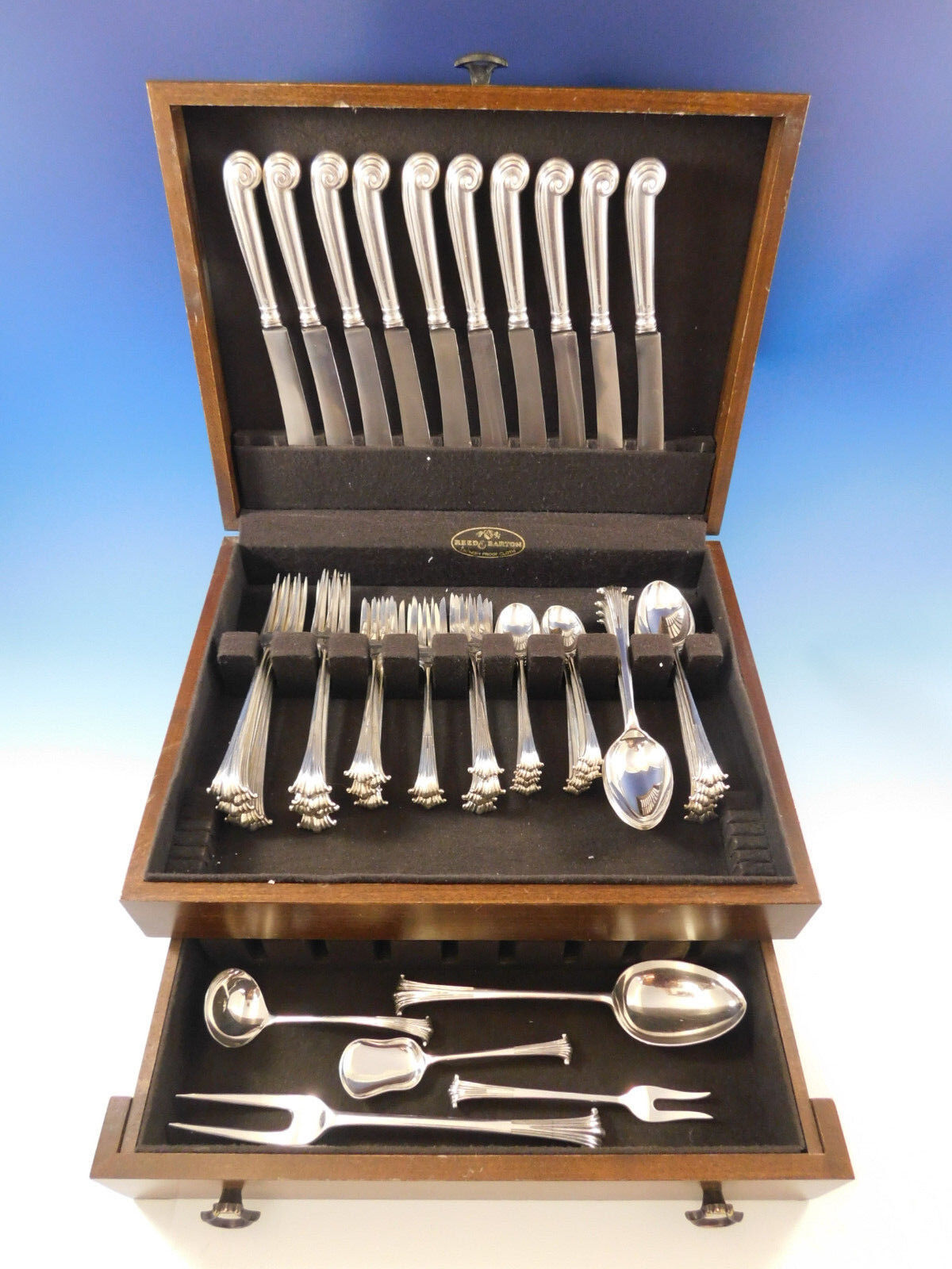 - Onslow by Marshall Fields Sterling Silver Flatware Set 10 Service 55 pcs Dinner