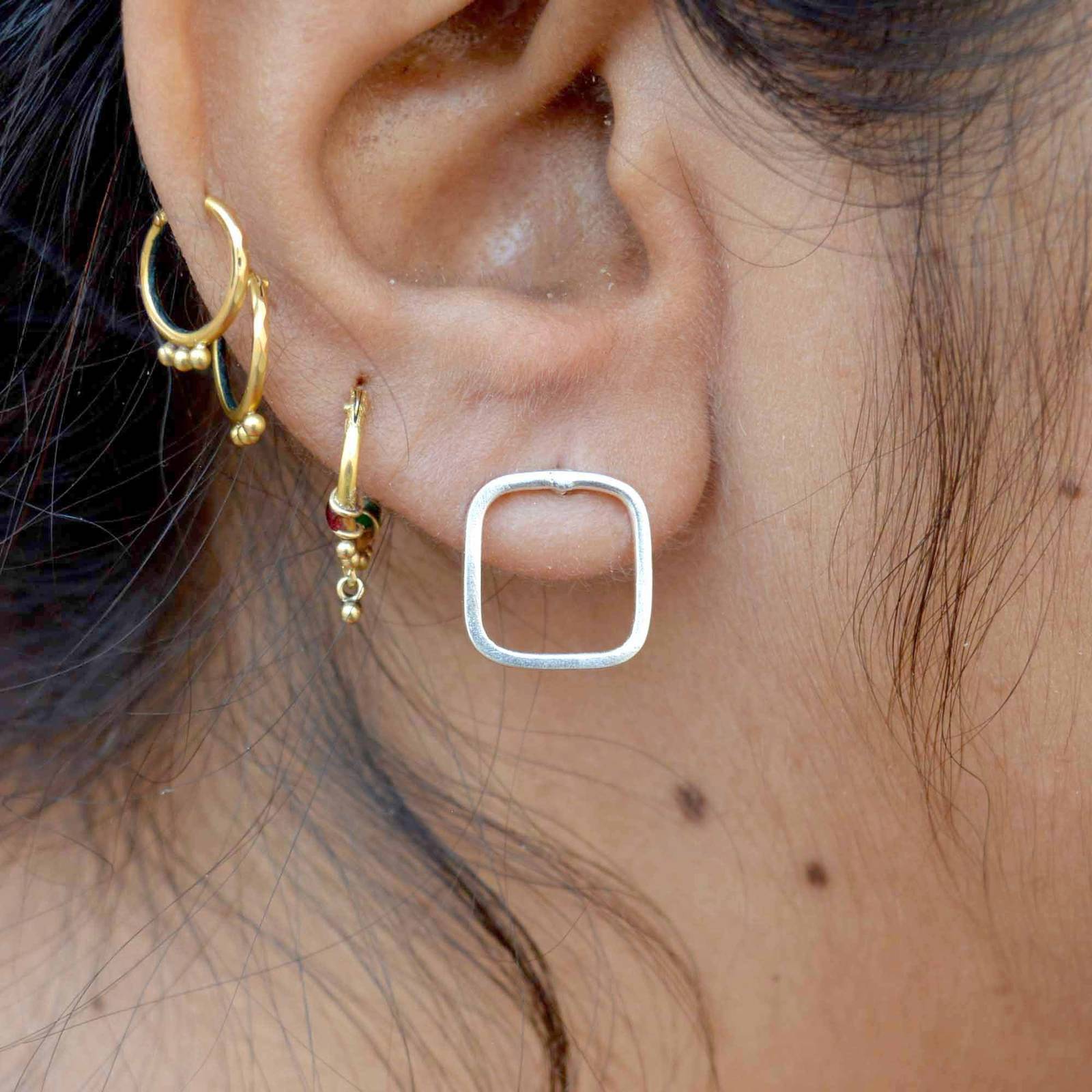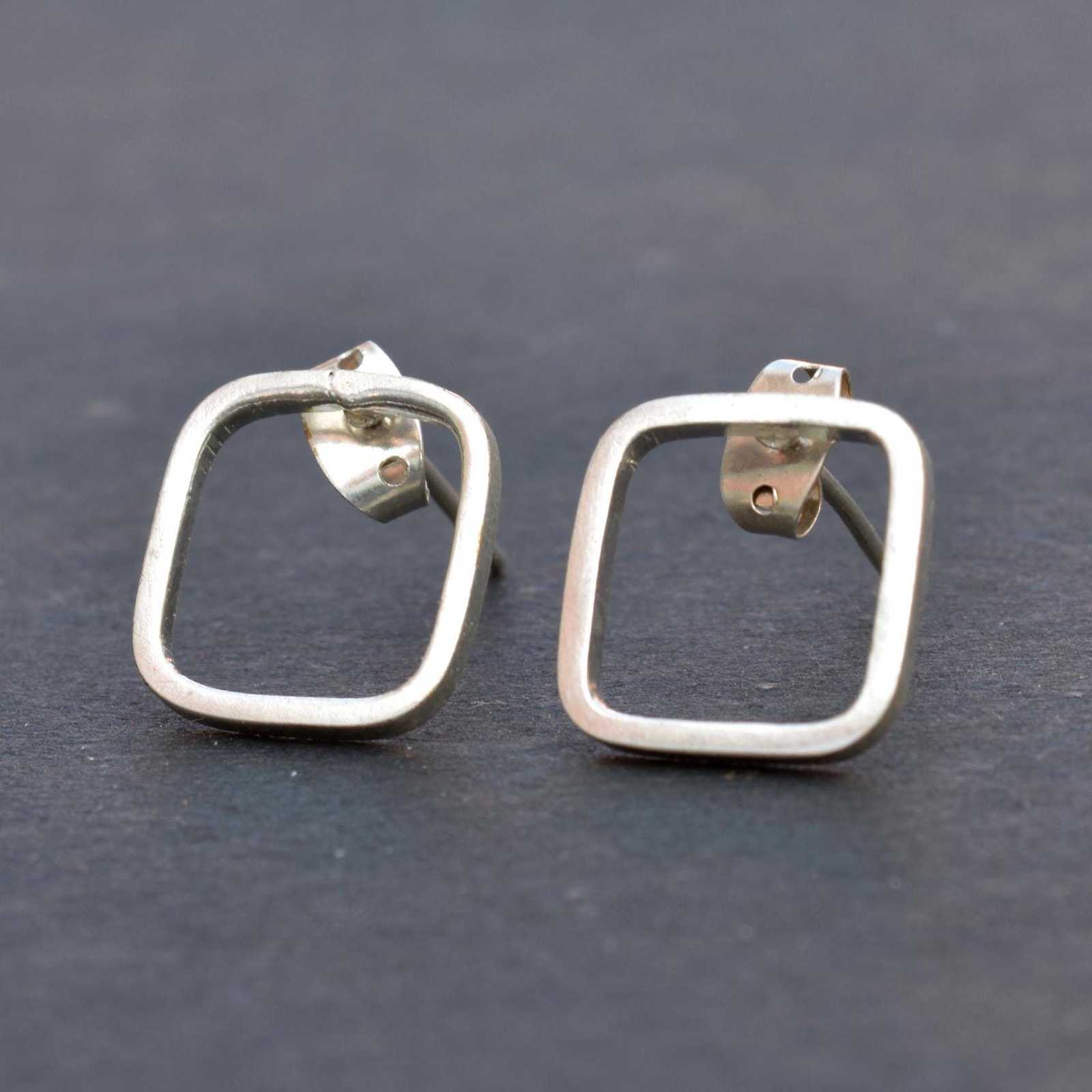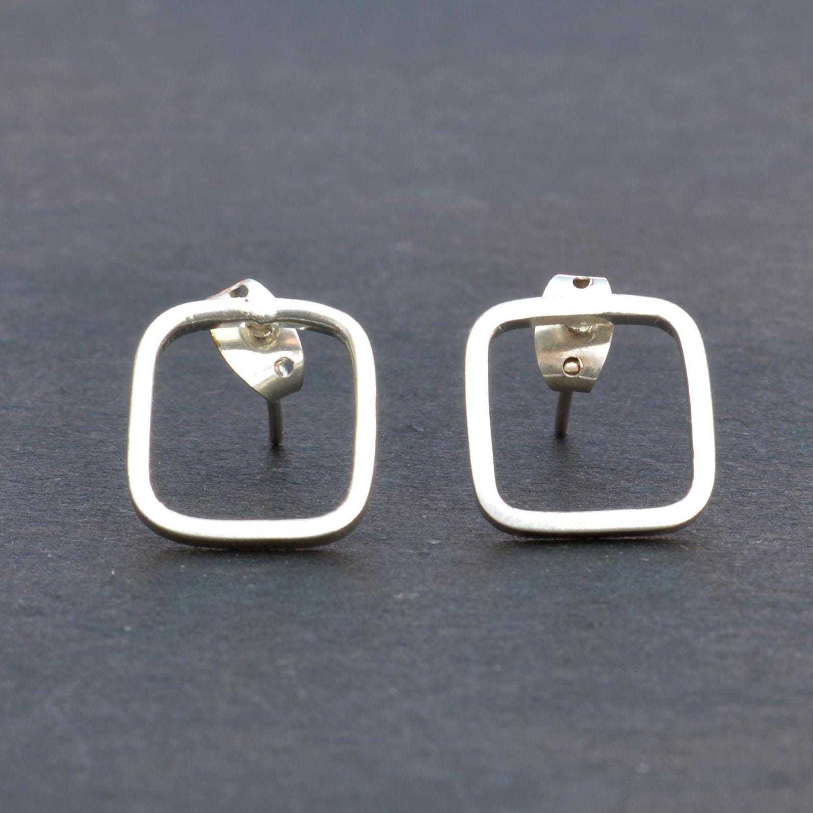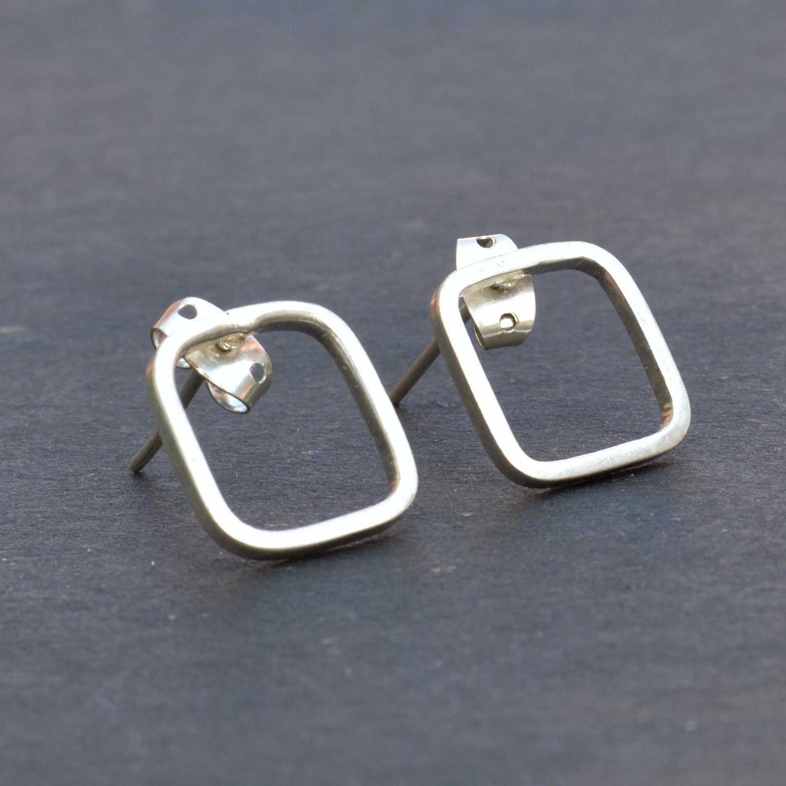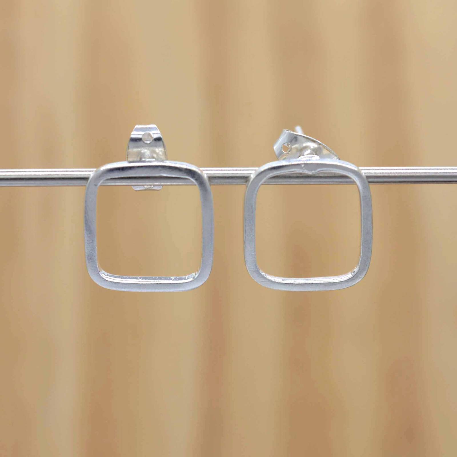 - Open Square Sterling Silver Studs Earrings Handmade Jewelry Gift For Women