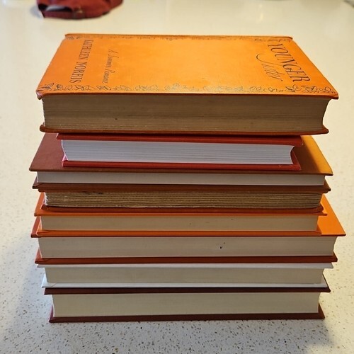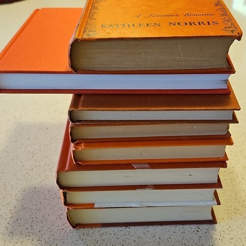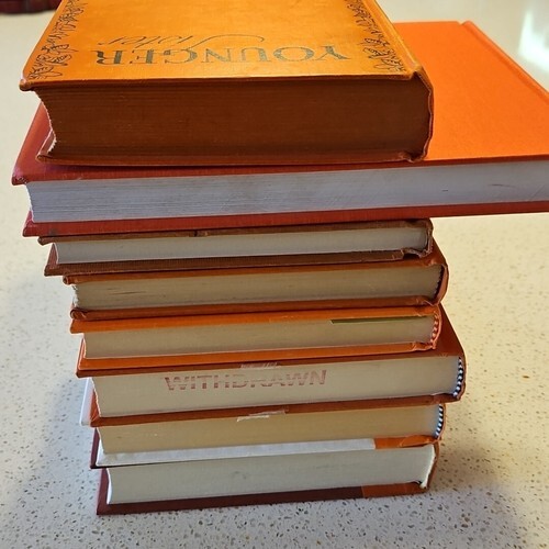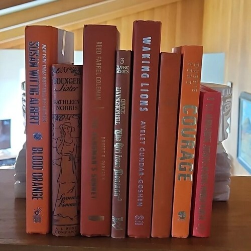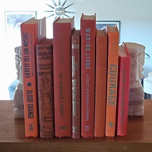 Great ORANGE collection of 8 vintage and modern hardback books. The perfect collection to add a dash of Autumn to your bookshelf game, or use in a staging book display.