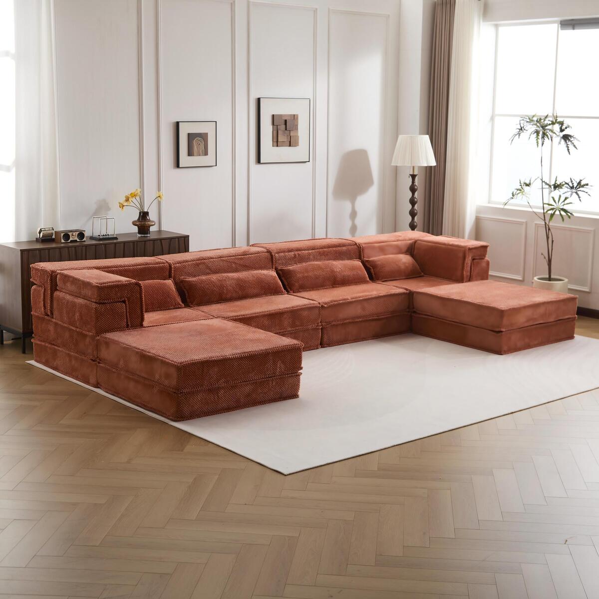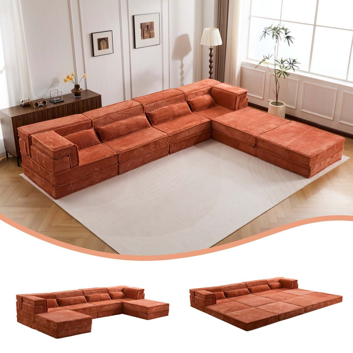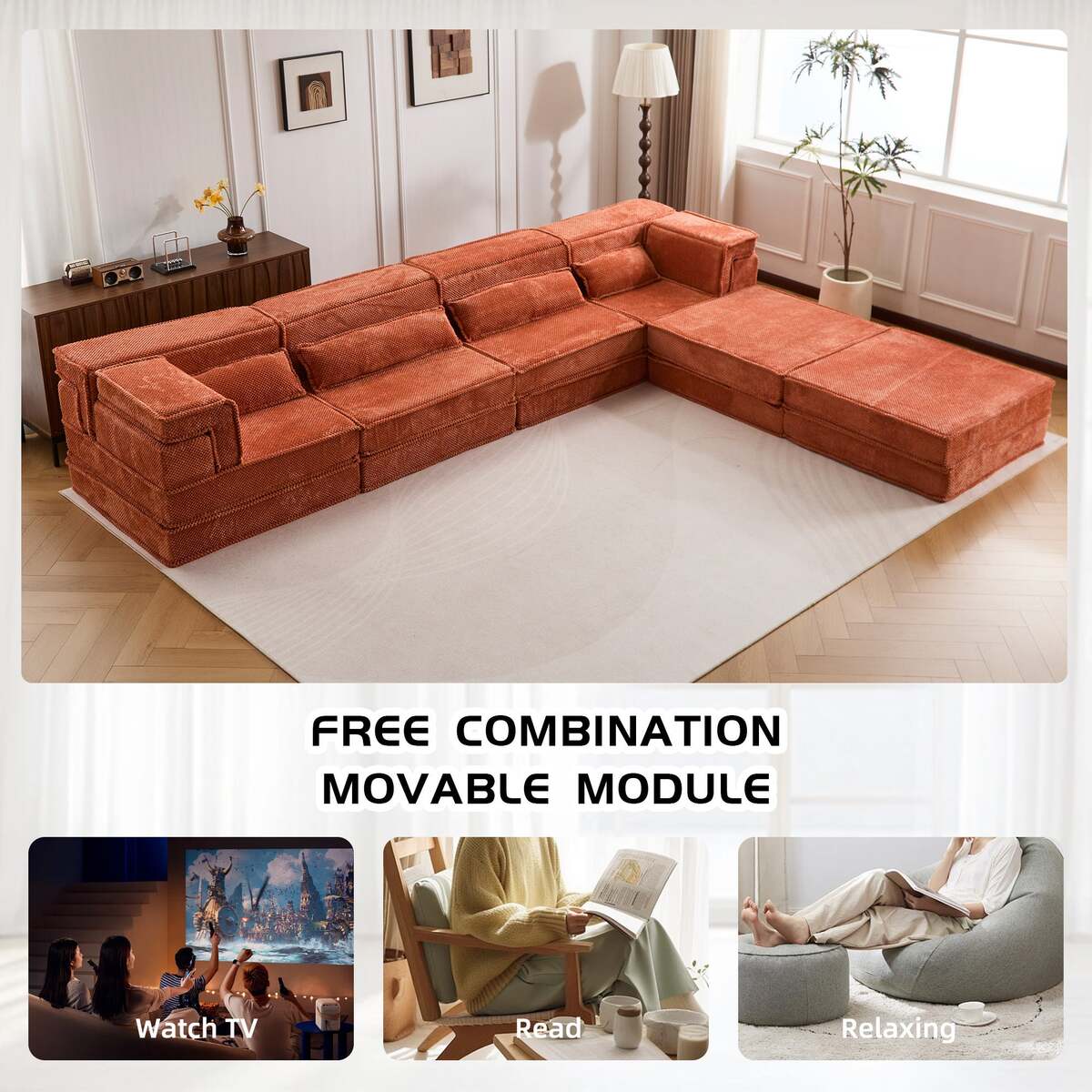 - Orange Mahjong Modular Sectional Sofa Bed 4-Seater No Assembly