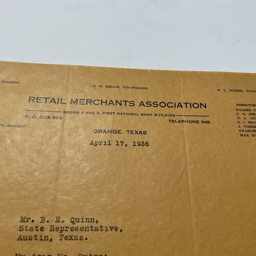 Retail Merchants Association Letter 1935 Orange Texas wilmer cain.