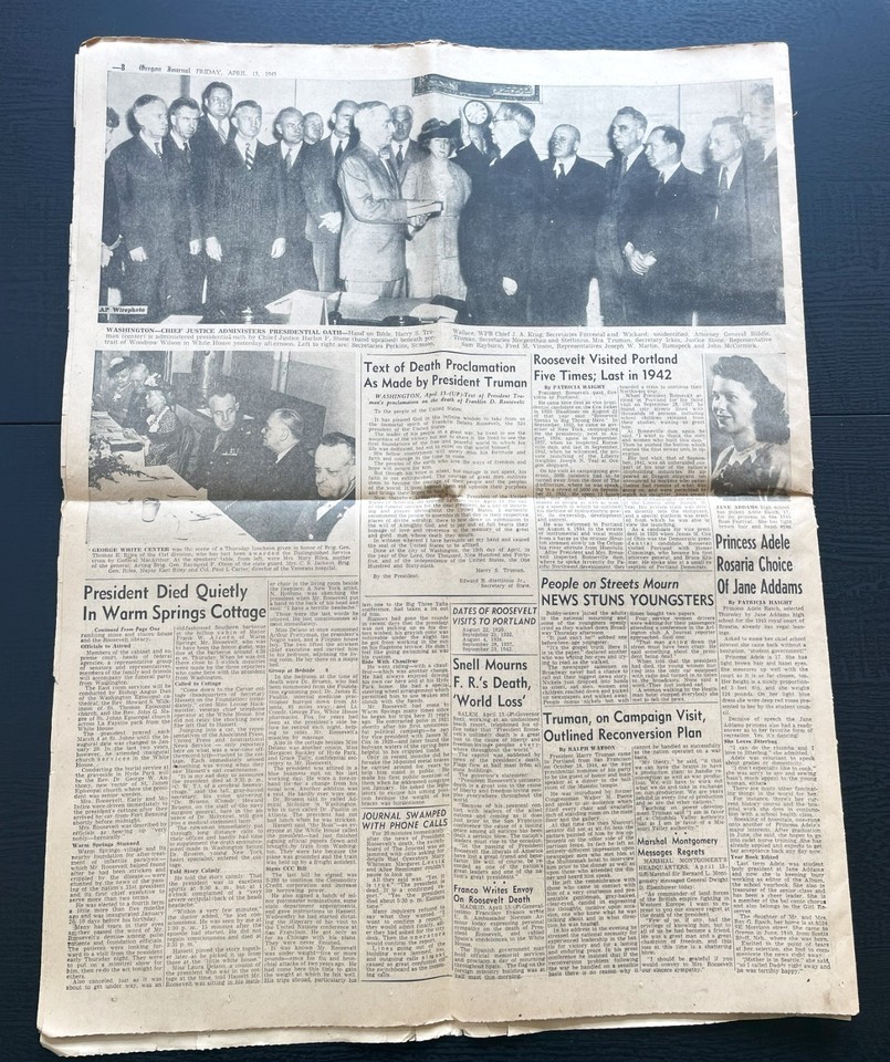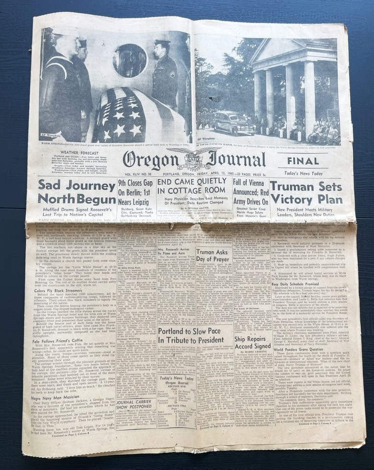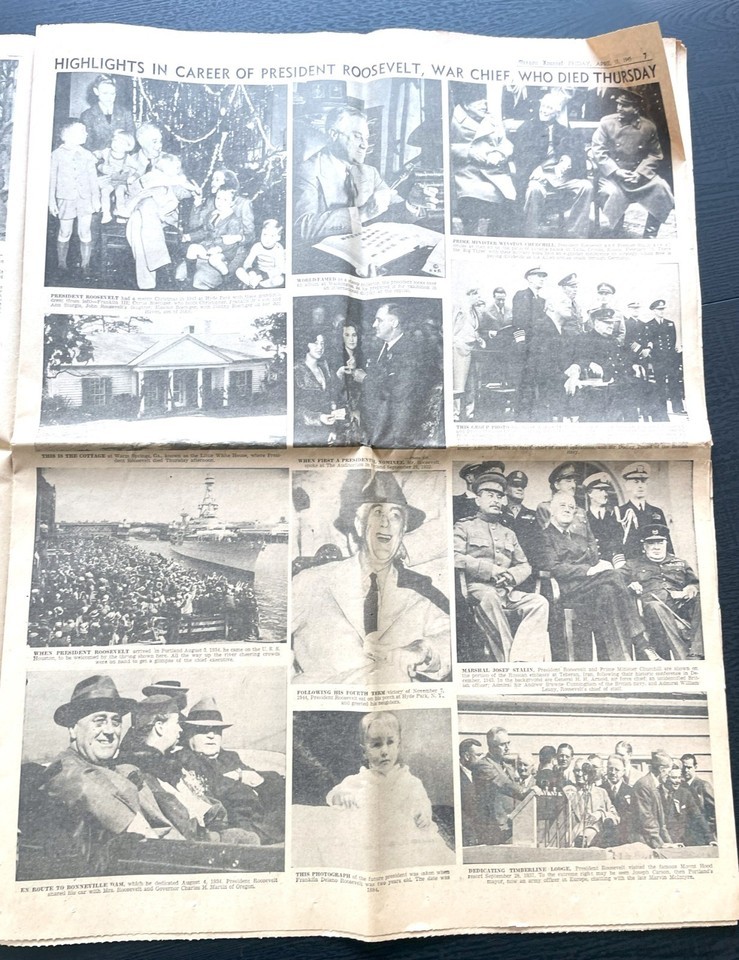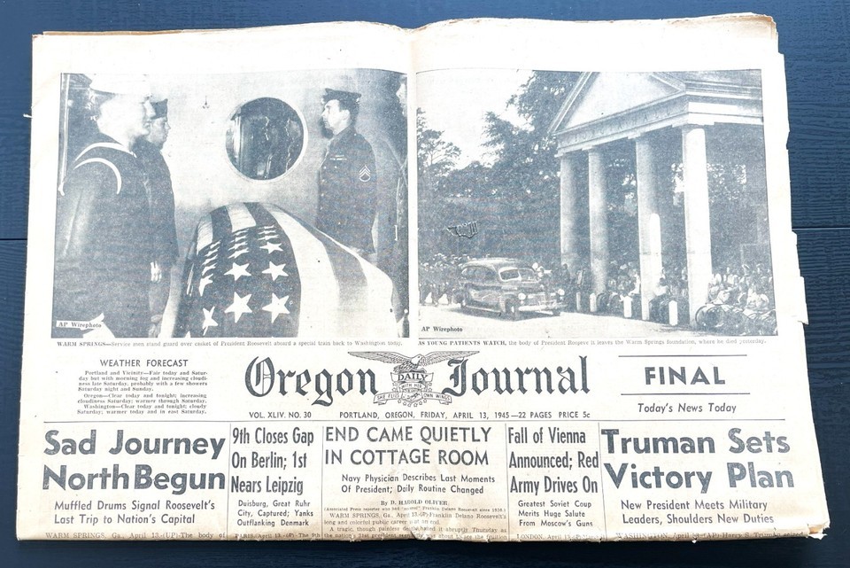 - Oregon Journal April 13 1945 FDR Dead WWII Franklin Roosevelt Complete Newspaper