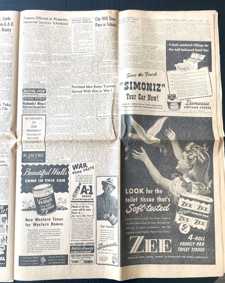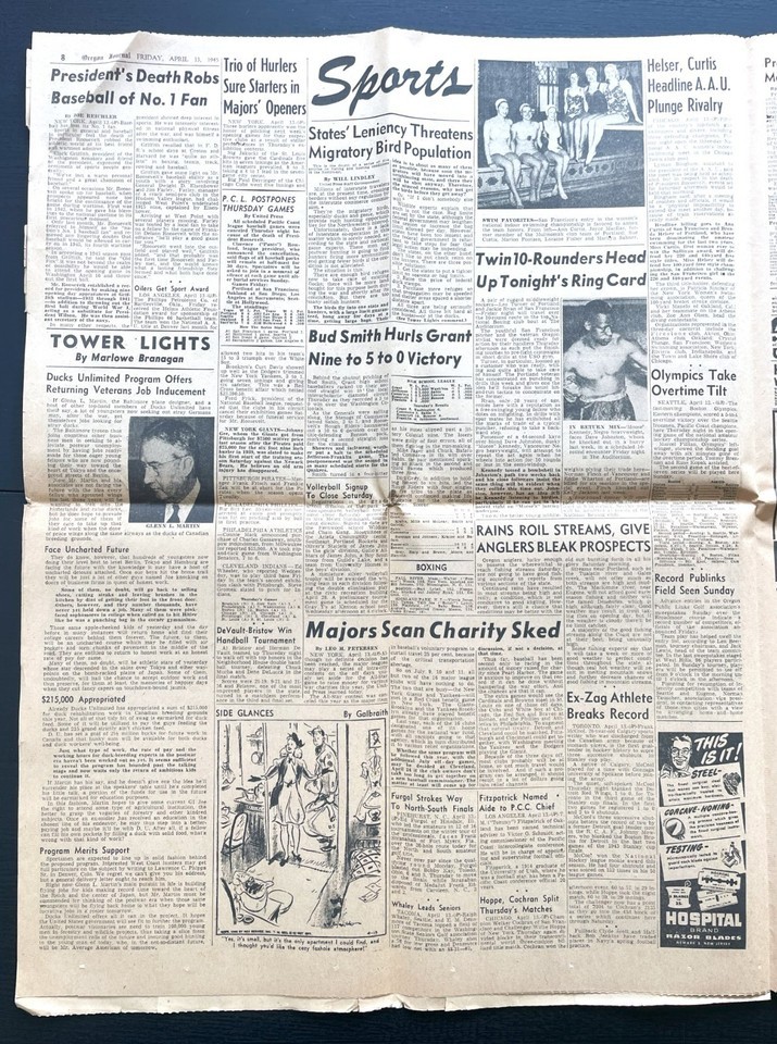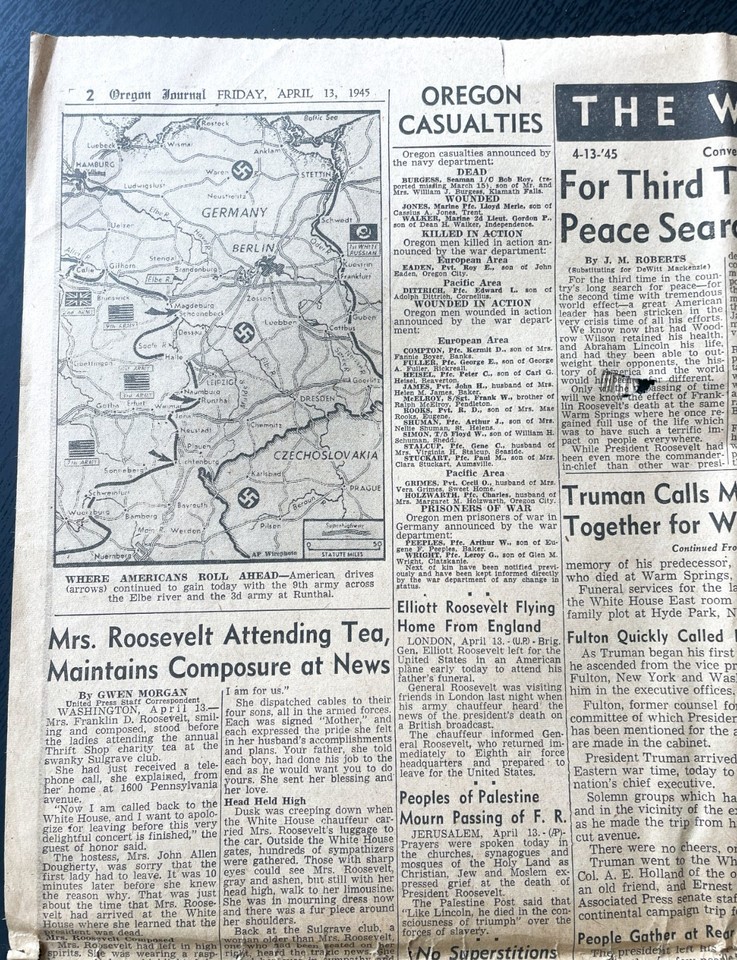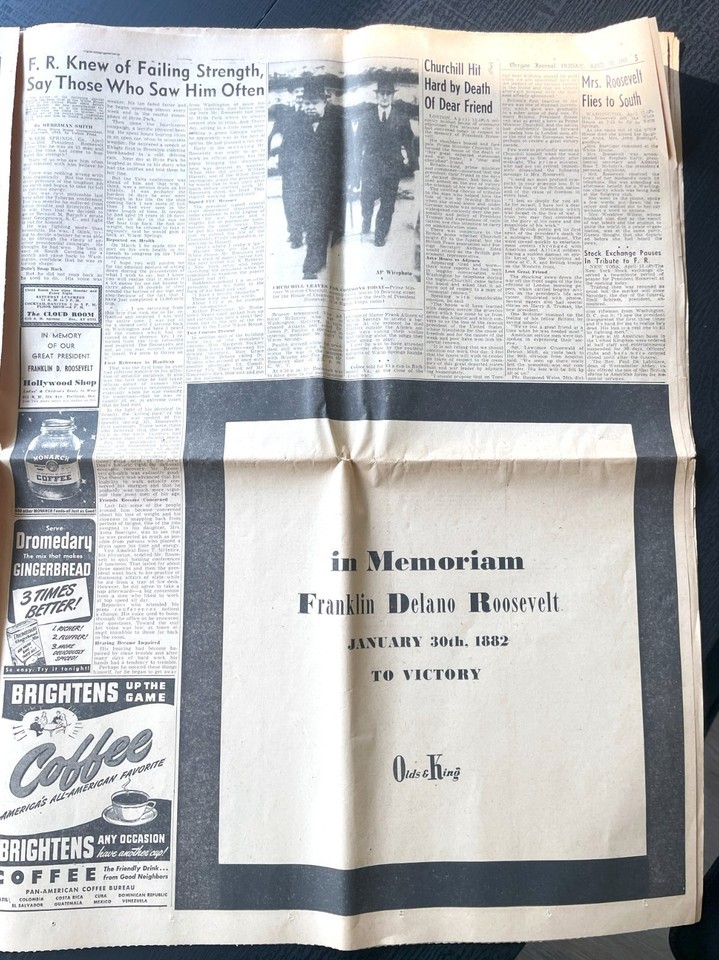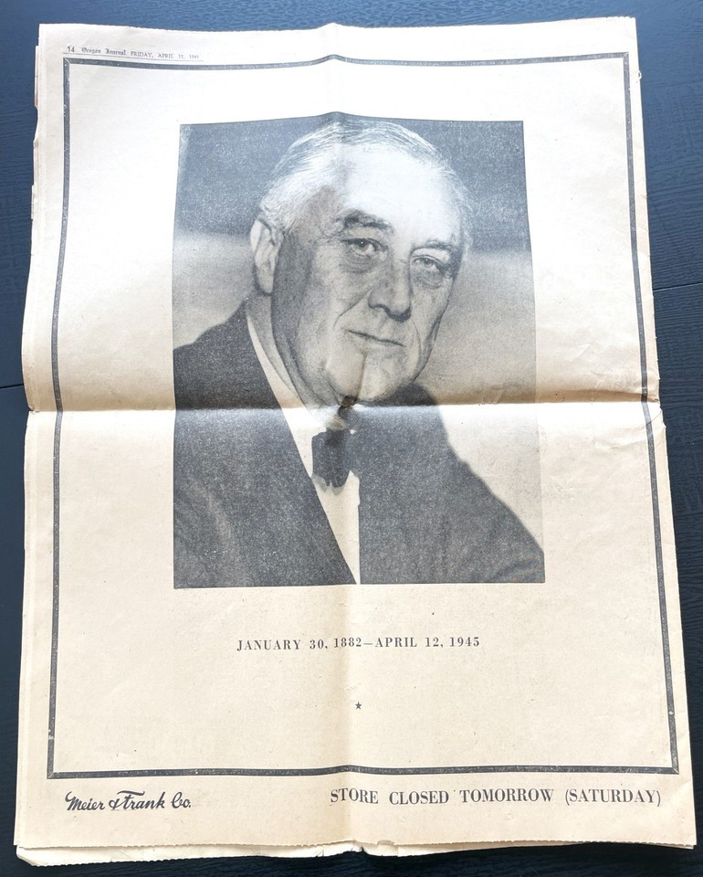 - Oregon Journal April 13 1945 FDR Dead WWII Franklin Roosevelt Complete Newspaper