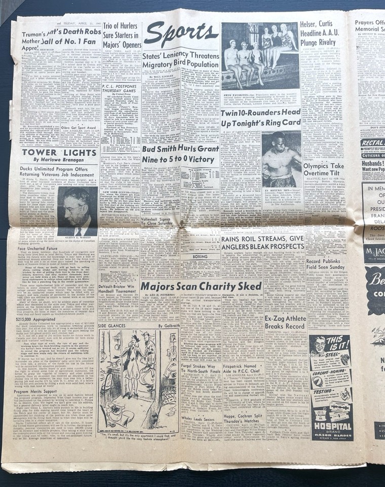 Up for sale is this complete Oregon Journal newspaper from April 13, 1945. It reports on the death of Franklin D. Roosevelt as well as news concerning World War II.