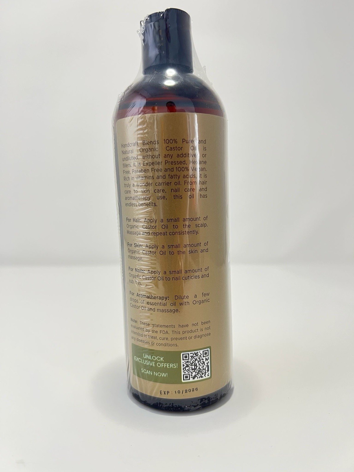 Handcraft Blends Organic Castor Oil - 16 Fl Oz - 100% Pure and Natural - Premium Grade Carrier Oil for Hair Growth, Eyelashes and Eyebrows - Hair and Body - Expeller-Pressed Hexane-Free