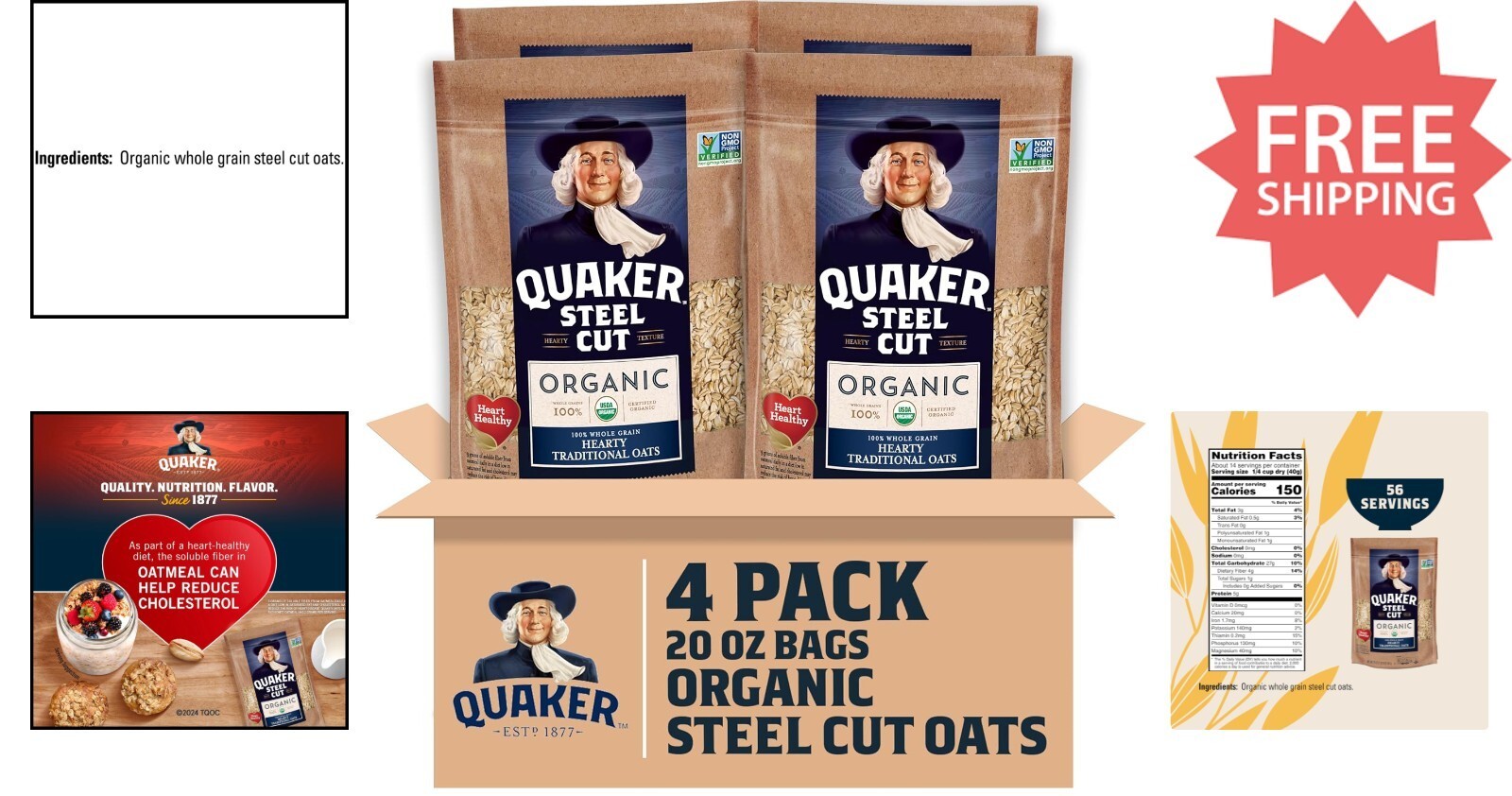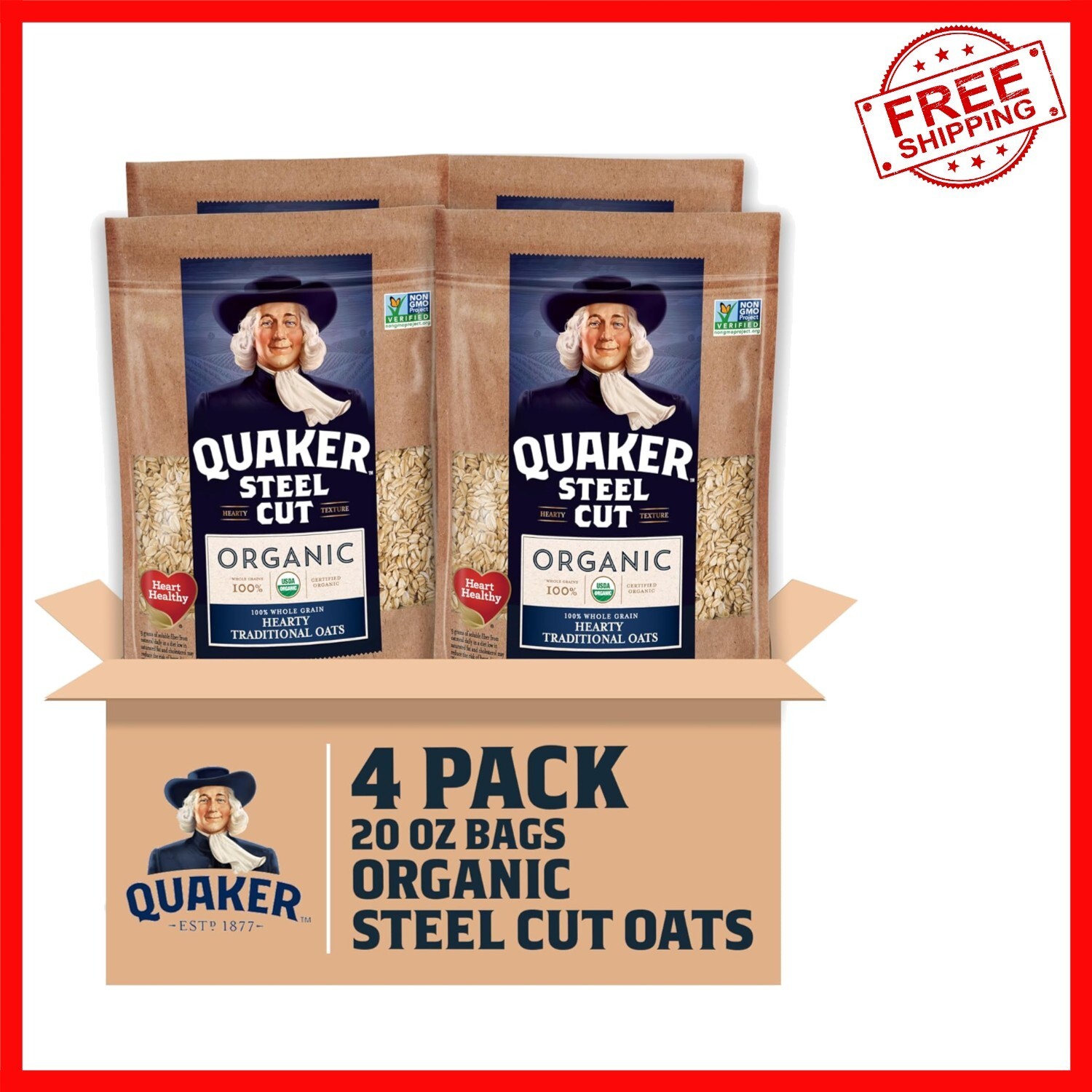 Start your day with the wholesome goodness of Quaker Steel Cut Oats. This package includes four 20oz resealable bags of USDA Certified Organic oats, free from artificial flavors, colors, or preservatives. Made from 100% whole grains and steel cut for a hearty texture and rich, nutty flavor, these oats are perfect for a nutritious breakfast that fuels your morning. Easily customizable with fruits, nuts, honey, or your favorite toppings, they offer a heart-healthy choice to support a balanced diet. Enjoy the versatile taste and wholesome benefits of these oats, ideal for busy mornings or a relaxing weekend breakfast.