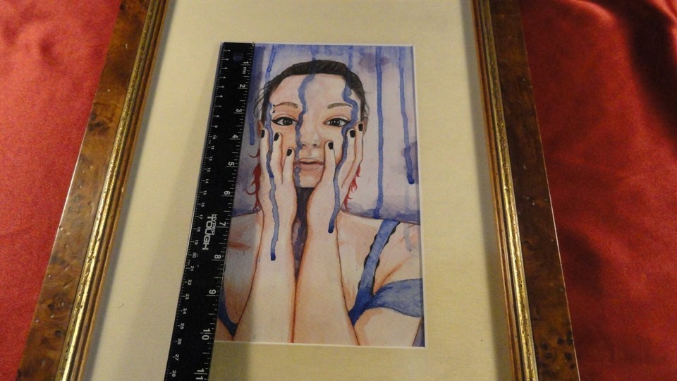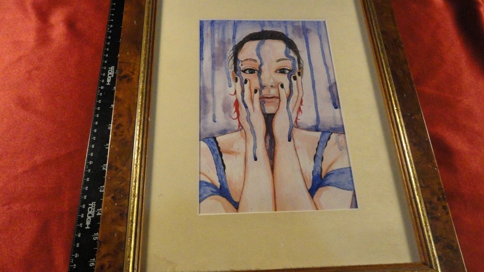 ORIGINAL ARTWORK BY JAY KAT D IN VINTAGE FRAME GIRL IN WATER 15" X 18" SIGNED