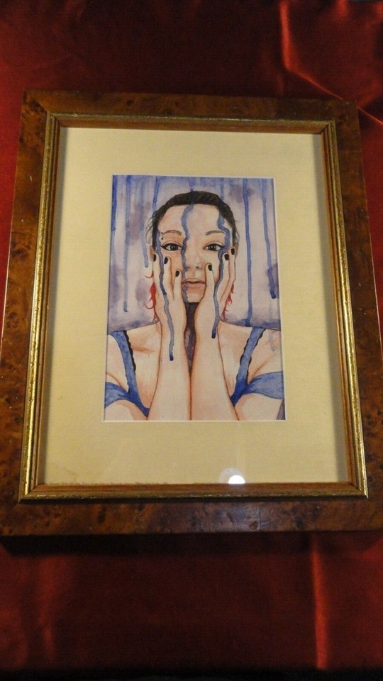 - ORIGINAL ARTWORK BY JAY KAT D IN VINTAGE FRAME GIRL IN WATER 15" X 18" SIGNED
