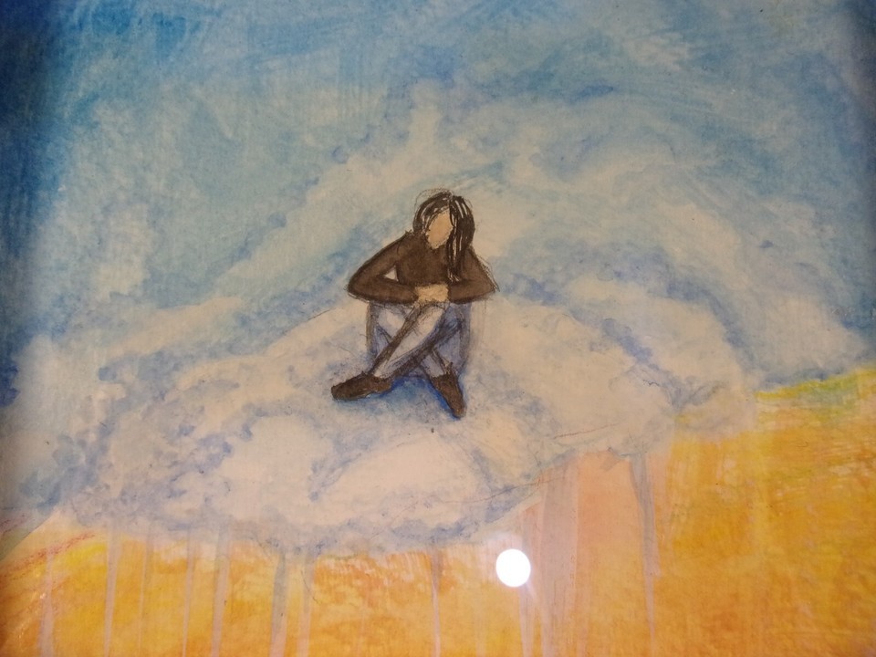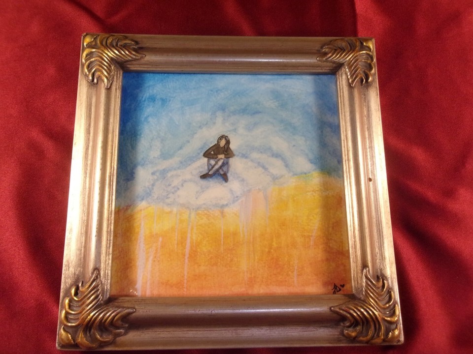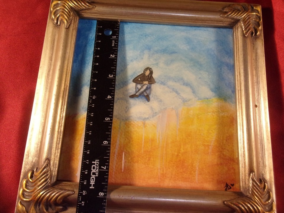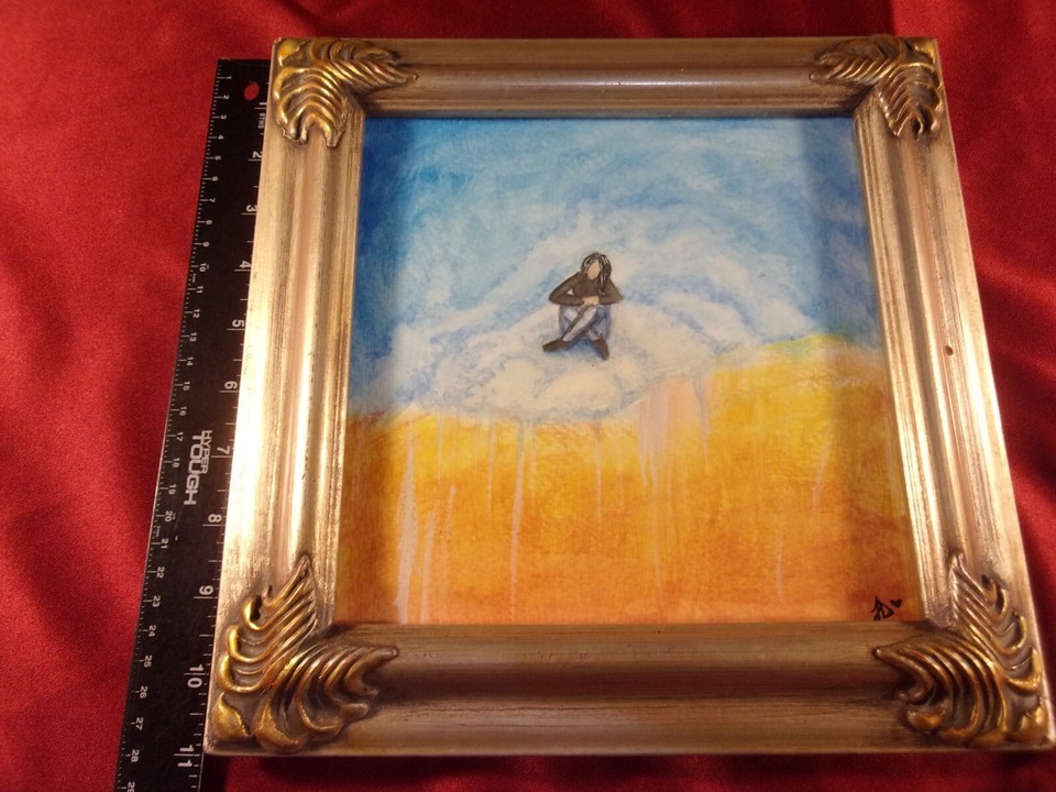 - ORIGINAL ARTWORK BY JAY KAT D IN VINTAGE FRAME GIRL ON CLOUD 11" X 11" SIGNED