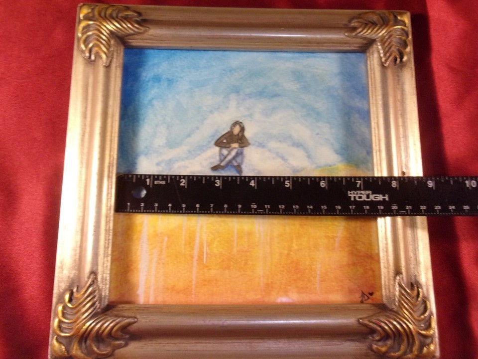 ORIGINAL ARTWORK BY JAY KAT D IN VINTAGE FRAME GIRL ON CLOUD 11" X 11" SIGNED