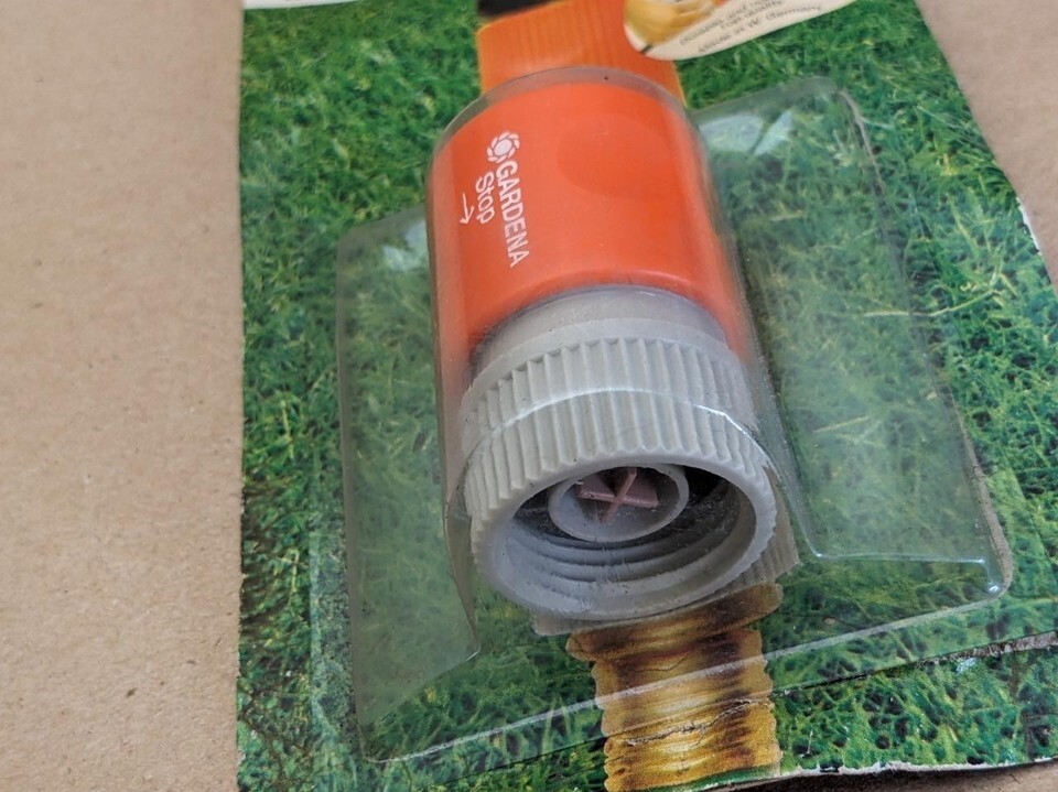 This is an ad for a Original Gardena-System Hose Connector Water Stop