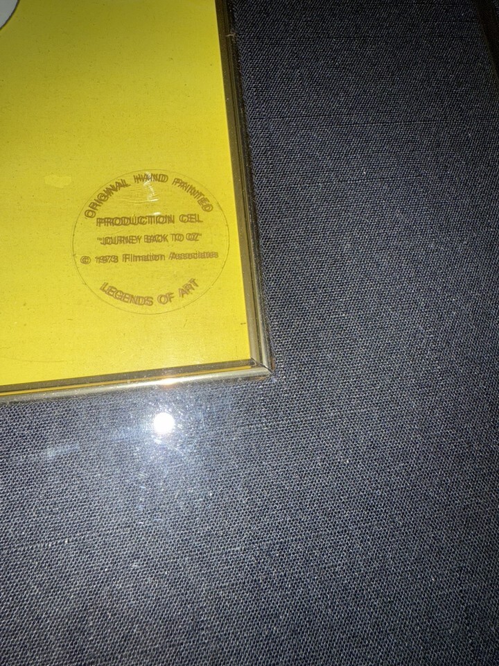 The product is a framed original hand-painted production cel and drawing from the 1973 cartoon "Journey Back to Oz." It is a collectible animation. The cel is from the production of the cartoon and is not a licensed reproduction. It features hand-painted artwork used in the creation of the animated film.