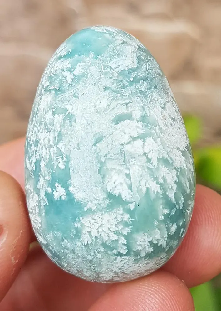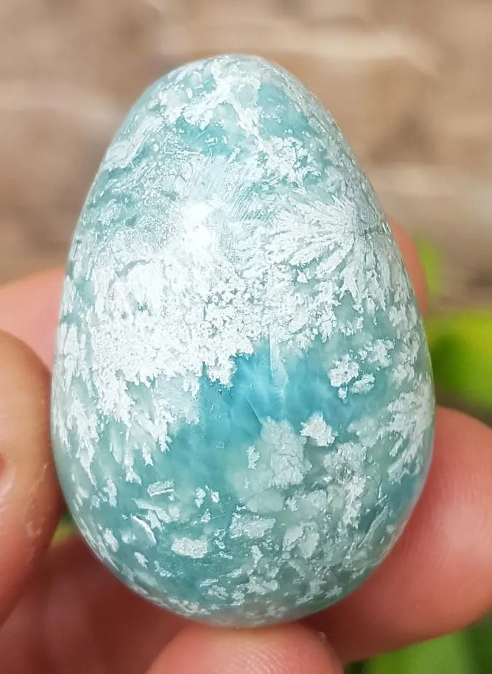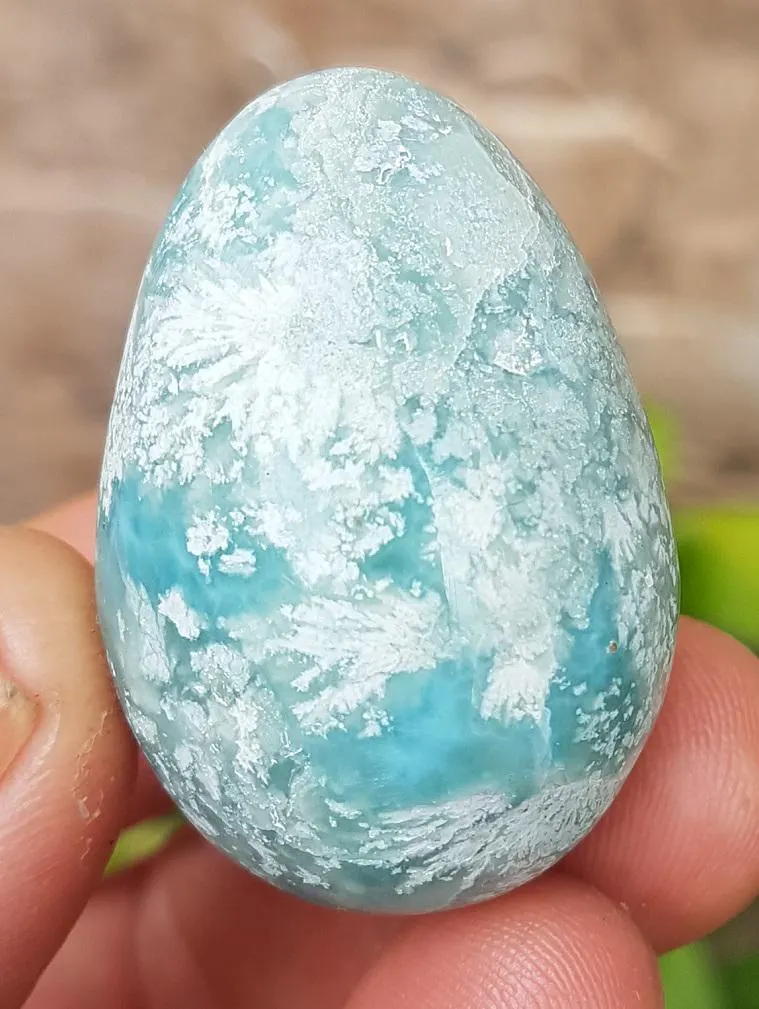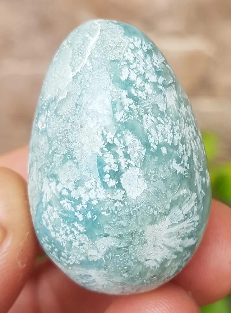 natural hand carved blue Larimar Gemstone Dominican Pectolite EGG (pa-5)