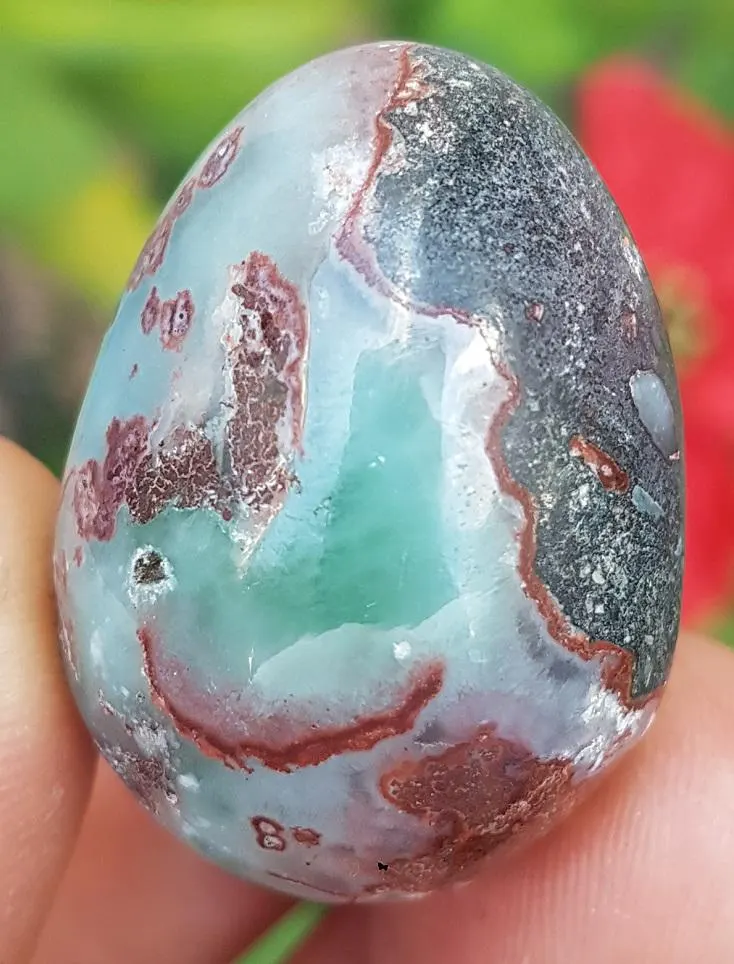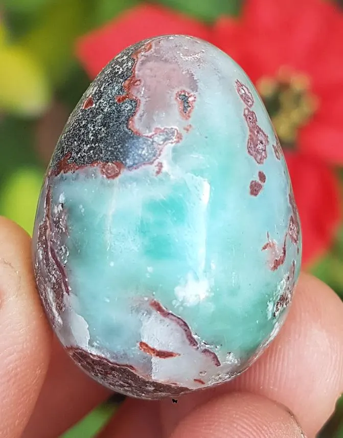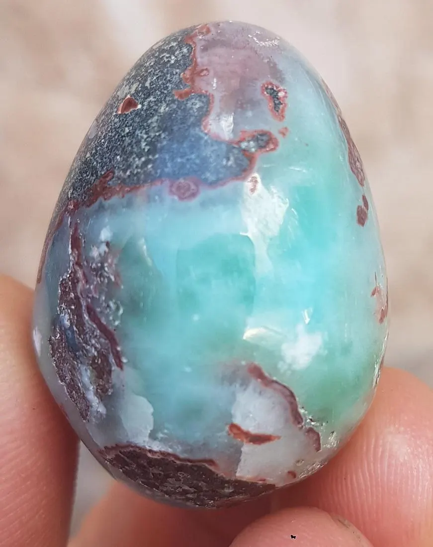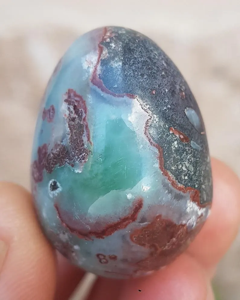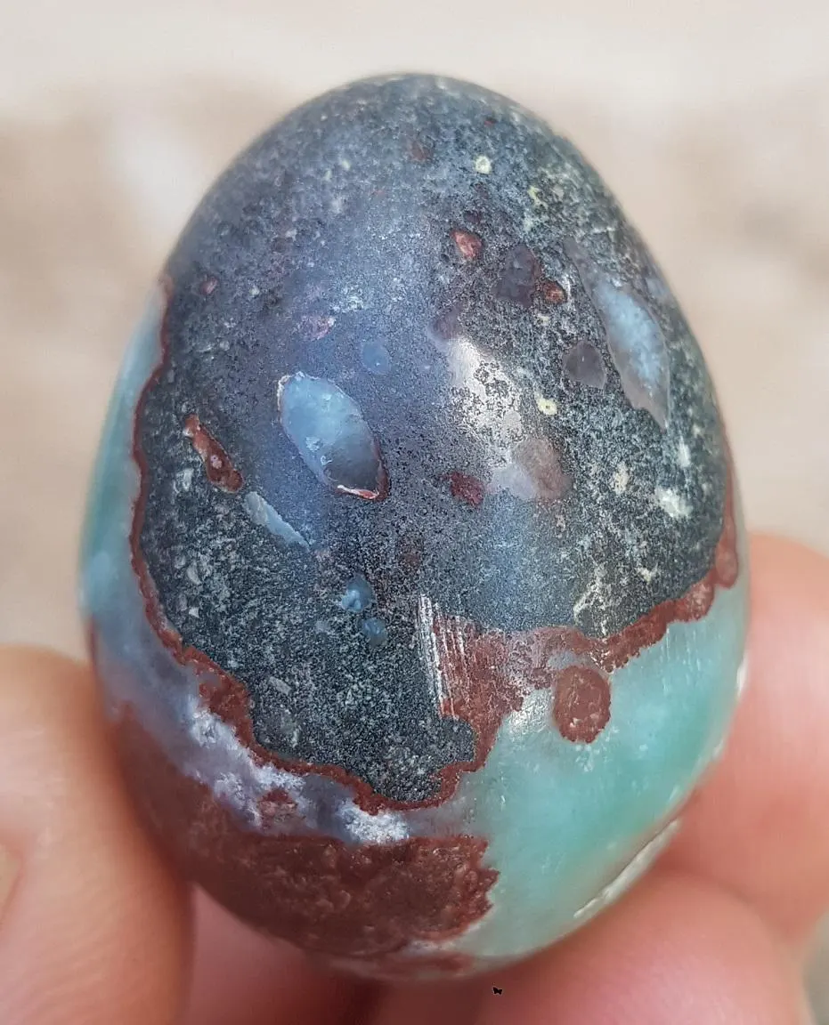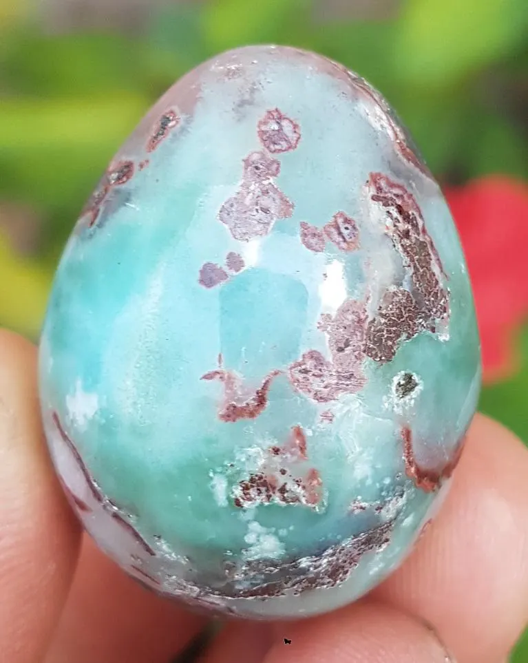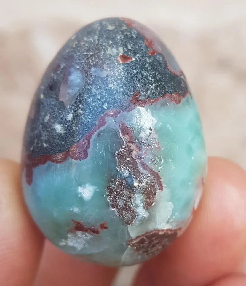 natural handcarved blue Larimar Gemstone Dominican Pectolite EGG (pa-3)