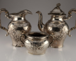- Ornate Sterling Silver British Tea/Coffee Set 1930s Hand-Chased