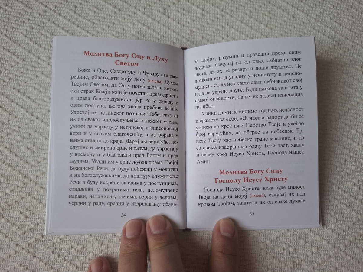 Serbian Orthodox Prayer Book for a blessing in the family with dimensions that is suitable for carrying in your pocket when traveling. Of course, it can be a very nice gift for your friend or relative. The book is new, unread, unused with no missing or damaged pages and a priest of the Orthodox Church consecrated the item.