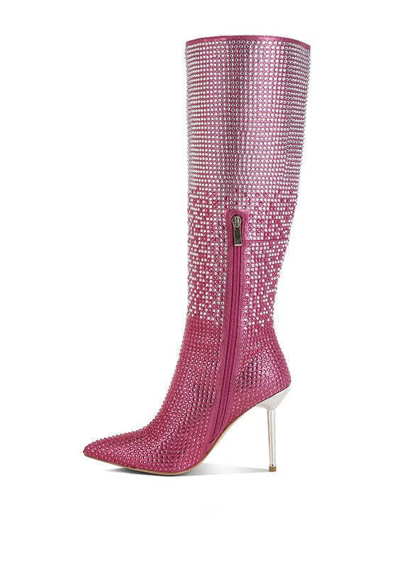 - Orymple Shiny Rhinestone Studded Calf Boots