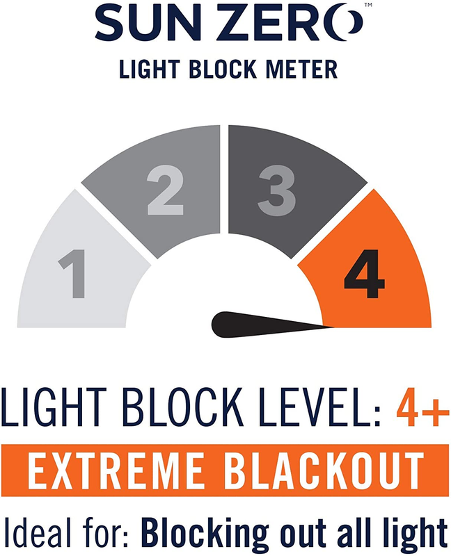 Provide the ultimate in light blocking technology to keep out even the harshest of light while bringing an elegant urban sophistication to any room of your home. Sun Zero Extreme Blackout technology is laboratory tested to block out 100% of light, reduce outside noise by up to 45%, and decrease energy lost through your windows by up to 50%. Comfort is optimized with thermal properties that help keep summer heat and winter chill out of your home. Built-in rod pocket design allows for easy slide-through installation on curtain rods up to 1.5" in diameter. Hang in your entertainment room to eliminate screen glare and reduce distracting outside noise, or in your bedroom for enhanced privacy and a sounder, more uninterrupted sleep.