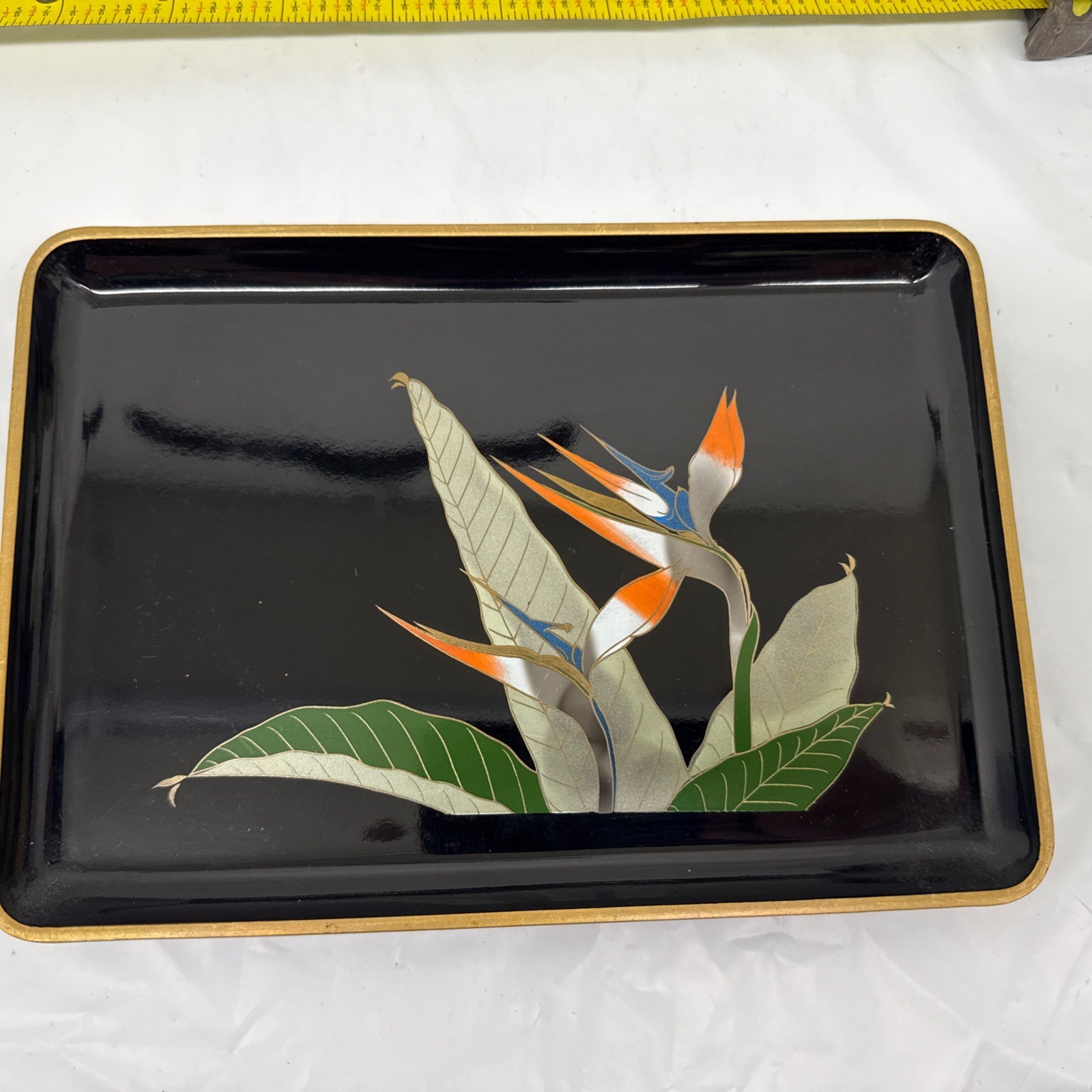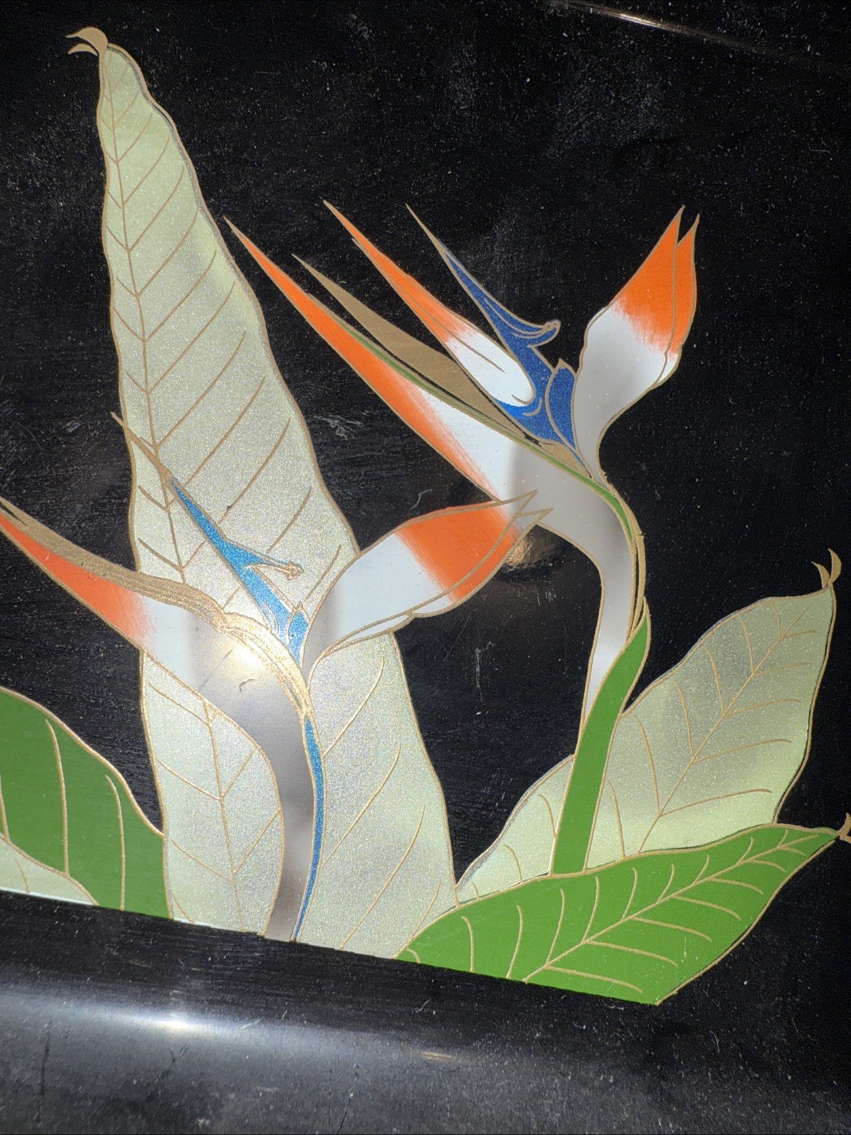 - Otagiri Japan Black Lacquer Bird Of Paradise Flower Tray W/stand