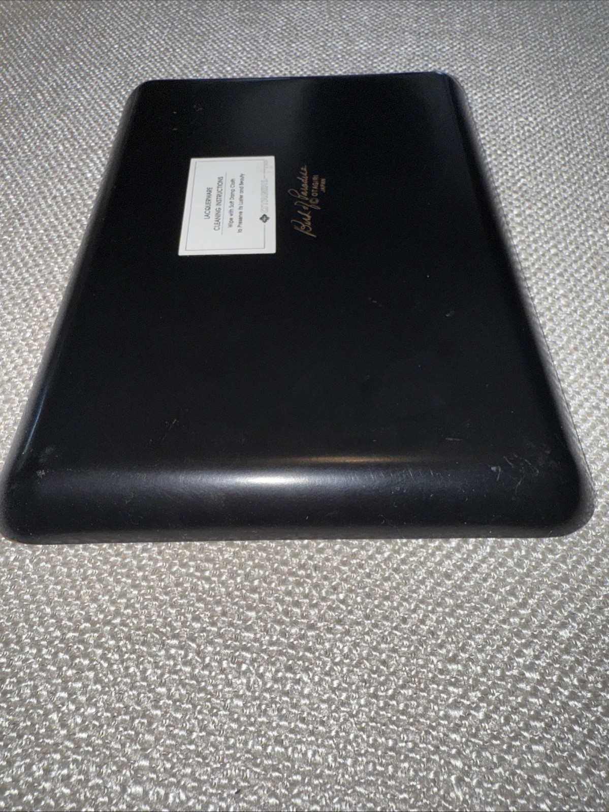 The Otagiri Japan Black Lacquer Bird Of Paradise Flower Tray with stand is a vintage serving tray made of melamine and plastic materials, featuring a rectangular shape and a small size of 14 inches in length and 10 inches in width. The tray has a unique flower pattern and a black lacquered finish, adding a touch of elegance to any kitchen or dining area. Manufactured in Japan during the 1970s, this tray is a collectible item that brings a touch of retro charm to your home decor.