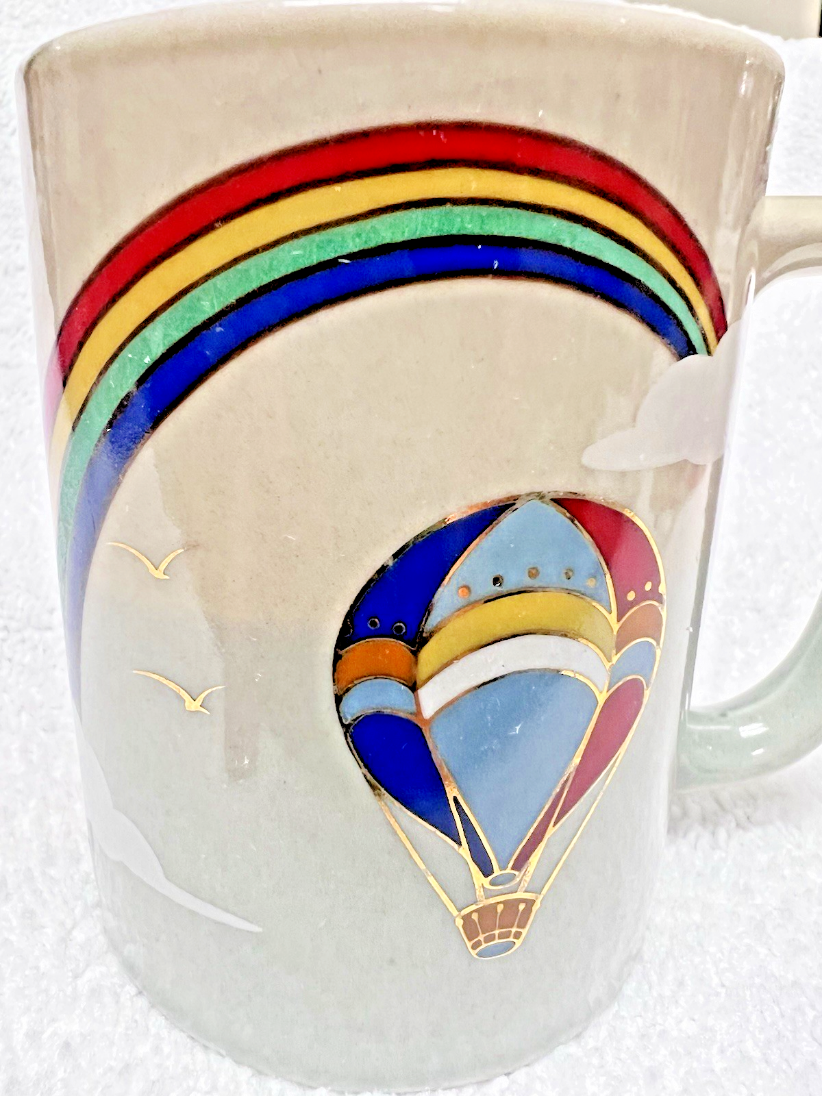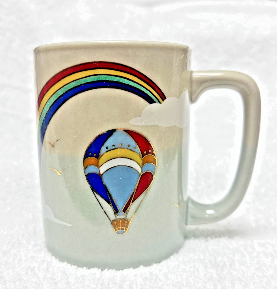 - Otagiri Mug Cup Rainbow Hot Air Ballon Clouds 3 3/4" Tall Excellent Shape w GOLD