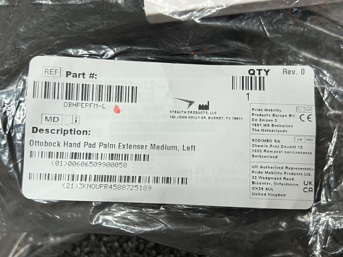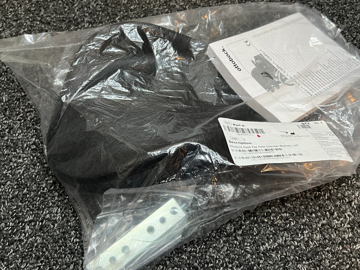 The item for sale is a brand new OttoBock Hand Pad Palm Extensor Medium, Left Hand, for Power Chair Arm Trough Armrest. Factory sealed with hardware.