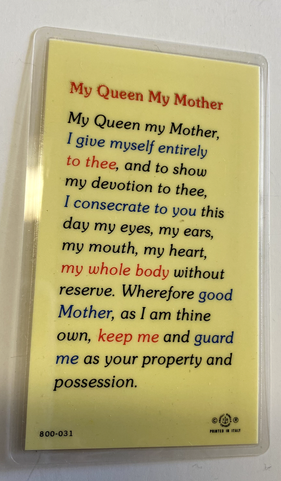 - Our Lady of Grace"My Queen,My Mother" Laminated Prayer Card, New #PCL-50