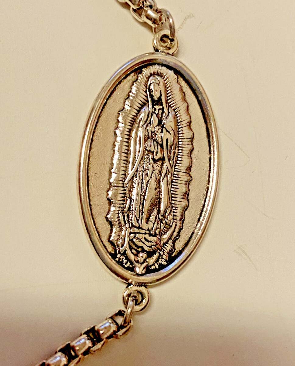 Your purchase is for a beautiful box chain bracelet,that has a .33 mm medal of Our Lady of Guadalupe.