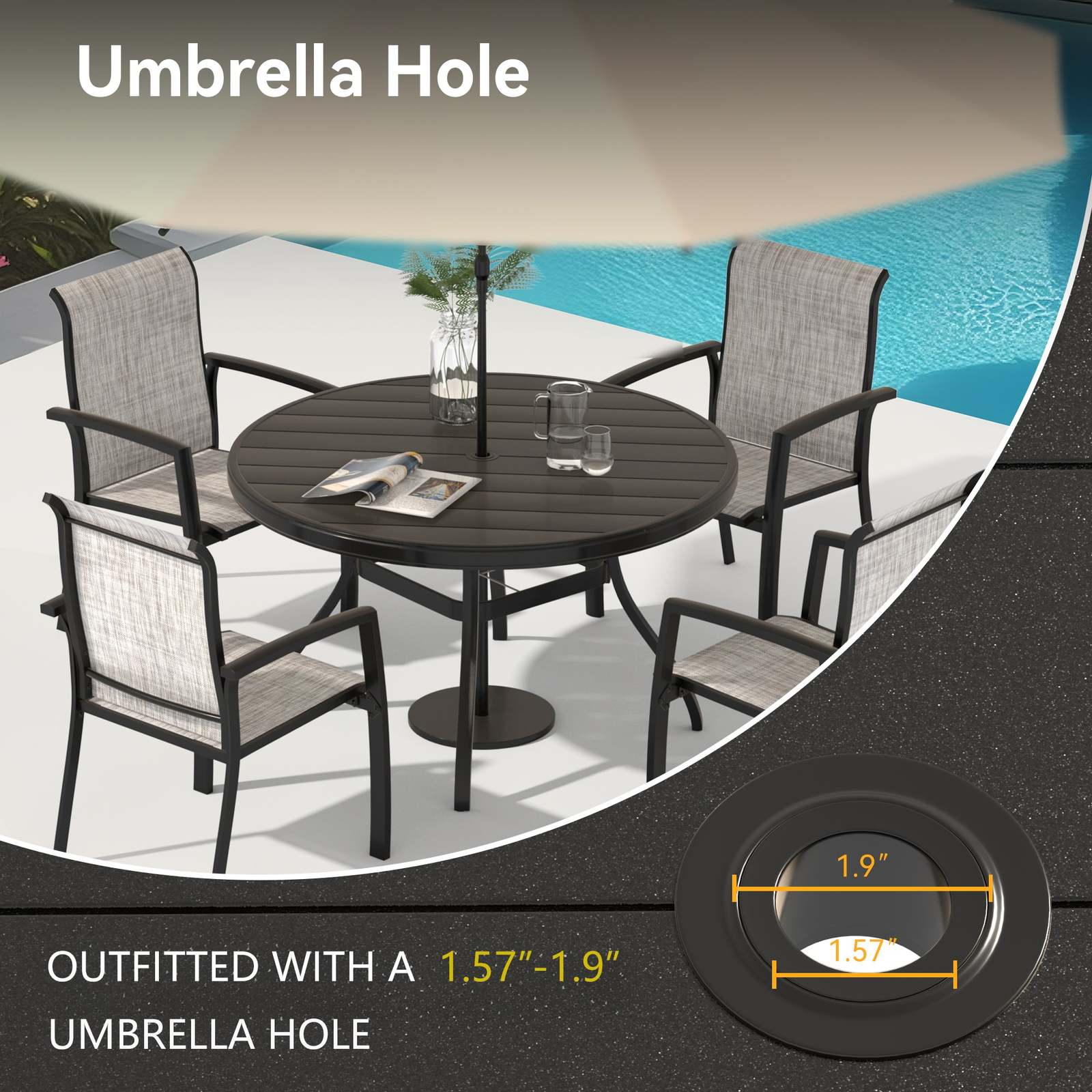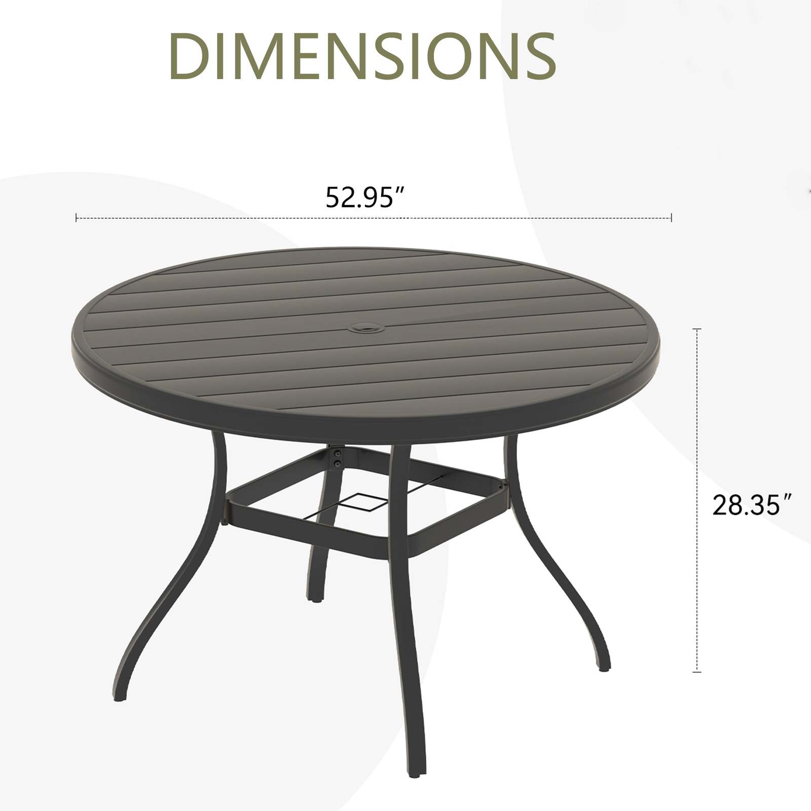 - Outdoor Round Metal Patio Dining Table w/ Umbrella Hole (6-7 Seats)