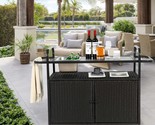 - Outdoor Wicker Bar Cart w/Cabinet, Ice Bucket, Steel Top, Wheels