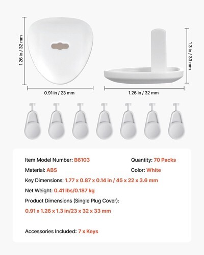 Great Value Pack: Includes 70-pack plug covers plus 7 disassembly keys-enough to safeguard multiple outlets around your home in one go. Save costs while getting practical, all-around protection for your family
