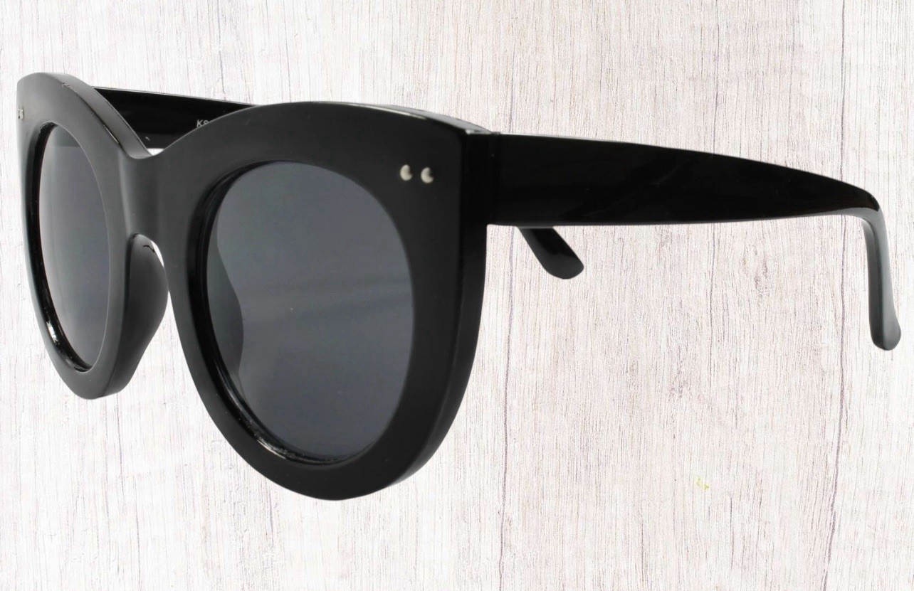 - Oversized Classic Retro Look Stylish Womens Round Cat Eye Sunglasses Black Frame