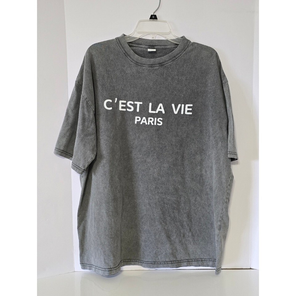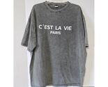 - Oversized Graphic T Shirt C'est La Vie Paris Washed Gray XL Cotton Blend