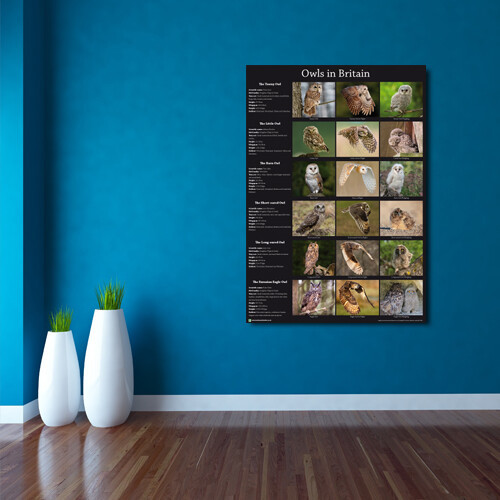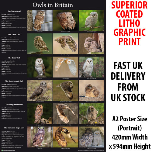- Owls in Britain Poster A2 59cm x 42cm Bird of Prey Eagle Barn Owl Print BLPA2P09