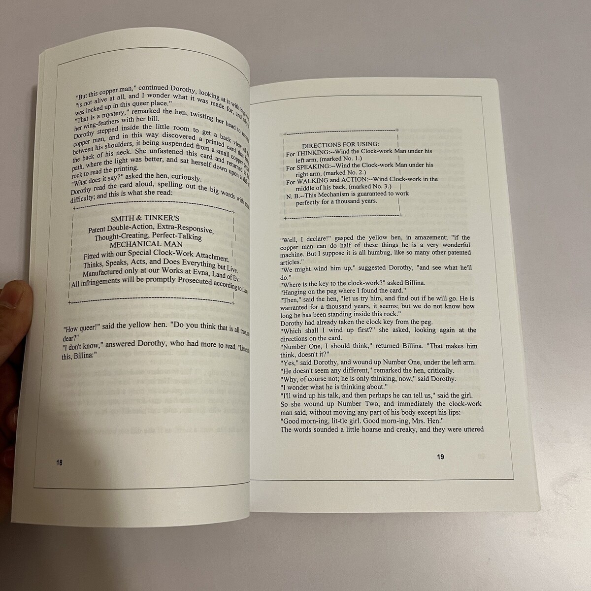 This is a modern paperback edition of L. Frank Baum's classic 1907 fantasy, 'Ozma of Oz,' the third book in the beloved Oz series. This edition faithfully reproduces the iconic cover art by John R. Neill, featuring Princess Ozma and Dorothy with her chicken, Billina. While not an antique, this crisp, clean copy allows readers and enthusiasts to experience the story and its original visual style affordably. The book is in very good condition, presenting an excellent reading copy for fans of classic American children's literature and the magical world of Oz.