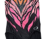 - Ozone One-Piece Gymnastics Leotard Black With Pink/Orange Abstract Design & Rhin
