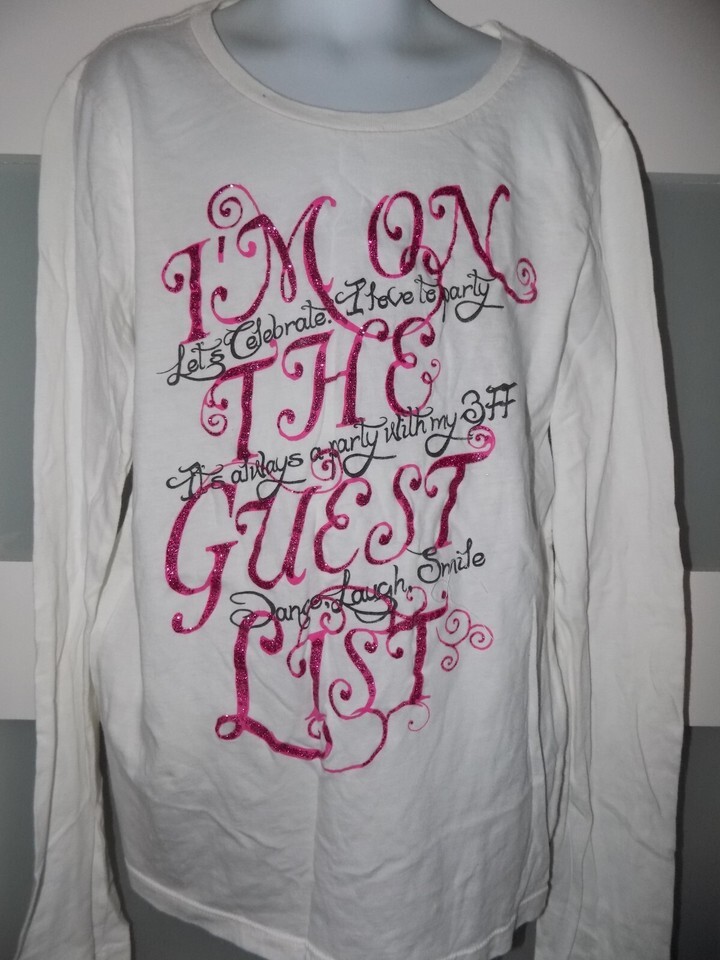 - P.S. Aeropostale White LS I'm On the Guest List Shirt Size XL (14) Girl's