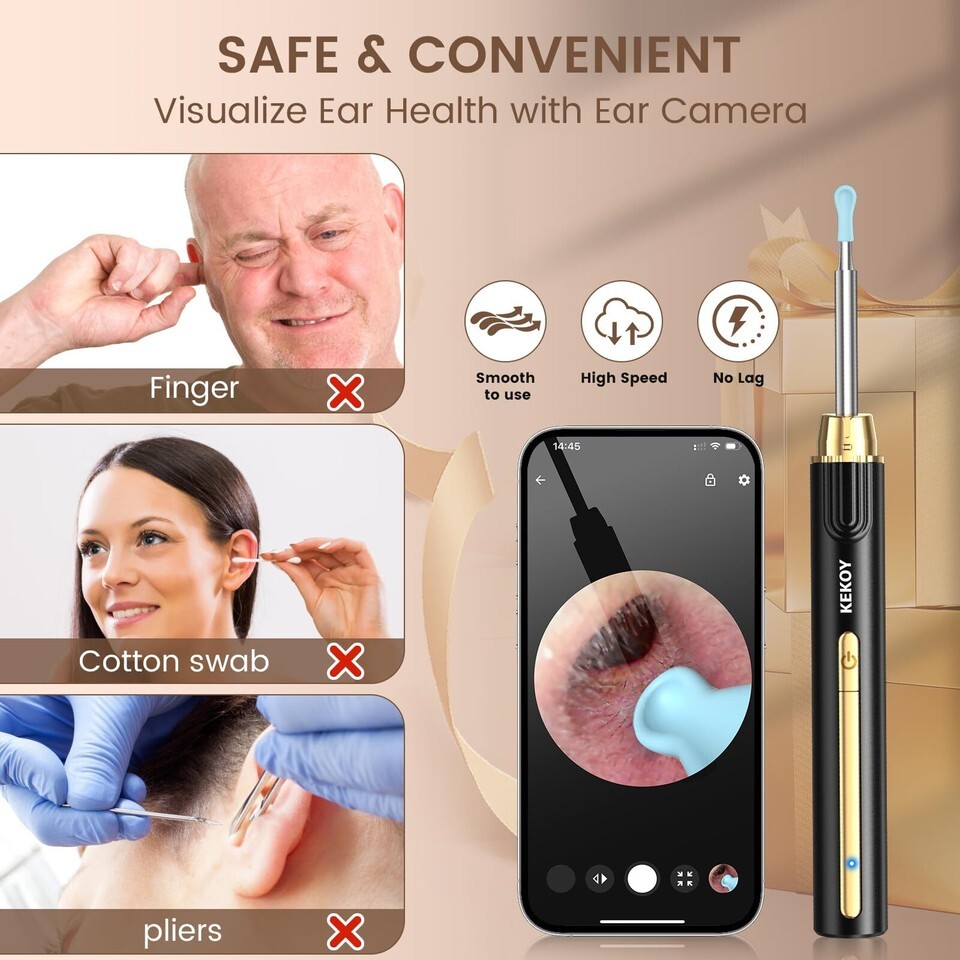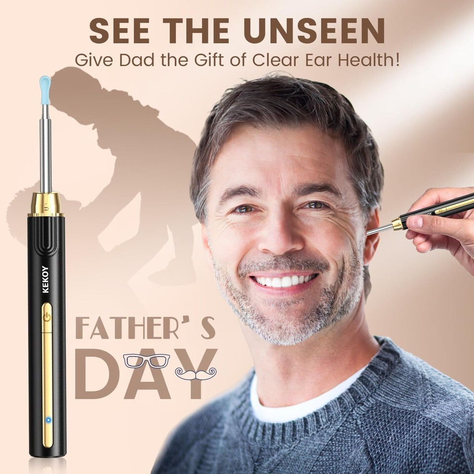 Kekoy Ear Cleaner with Camera, 1296P HD Ear Wax Removal Tool Camera, WiFi Otoscope with Light for Ear Cleaning, Father's Day Gift Ear Endoscope with 8 pcs Ear Set - P8 (Gold for Papa)