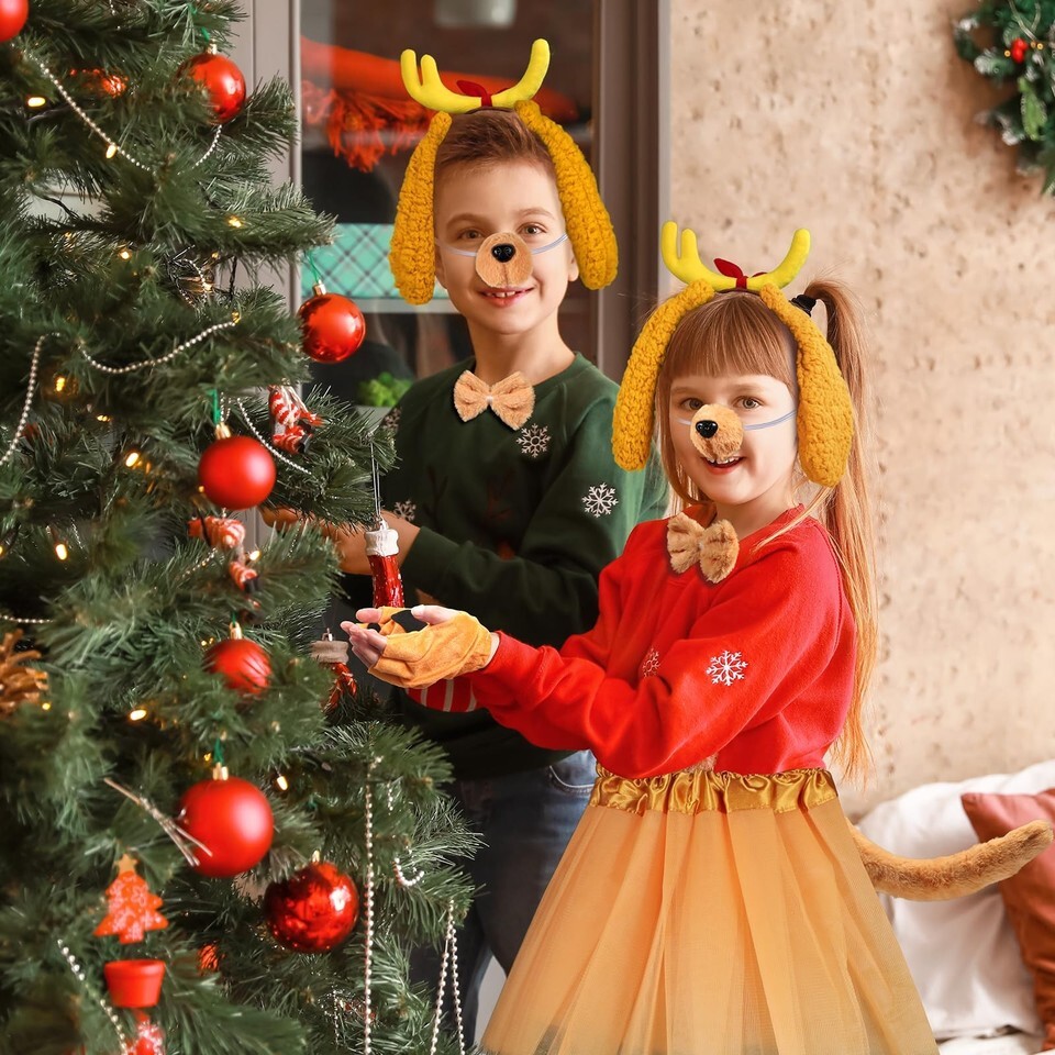 BECOME THE PARTY HIGHLIGHT WITH THIS ADORABLE COSTUME SET - This Antler Headband With Dog Ears costume set includes a plush antler headband with soft dog ears, a cute nose, a charming bow tie, and a fluffy tail. Step into a classic character that everyone will recognize and adore! This set ensures youll stand out with a memorable and heartwarming look. Everyone understood your theme and thought it was so fun and original! Lots of compliments!