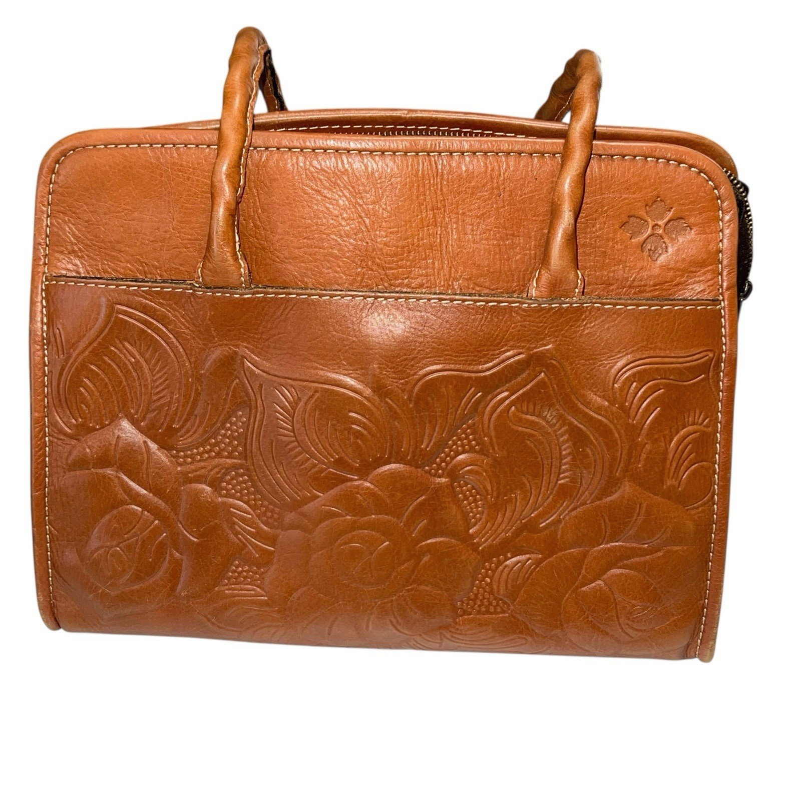 - PATRICIA NASH Paris Satchel Tooled Leather Old Rose Purse Handbag Brown Floral