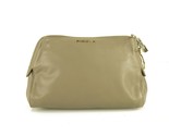 - PAULE KA taupe leather with ring zipper pulls & padlock Clutch bag Handbag