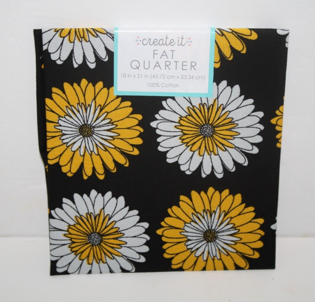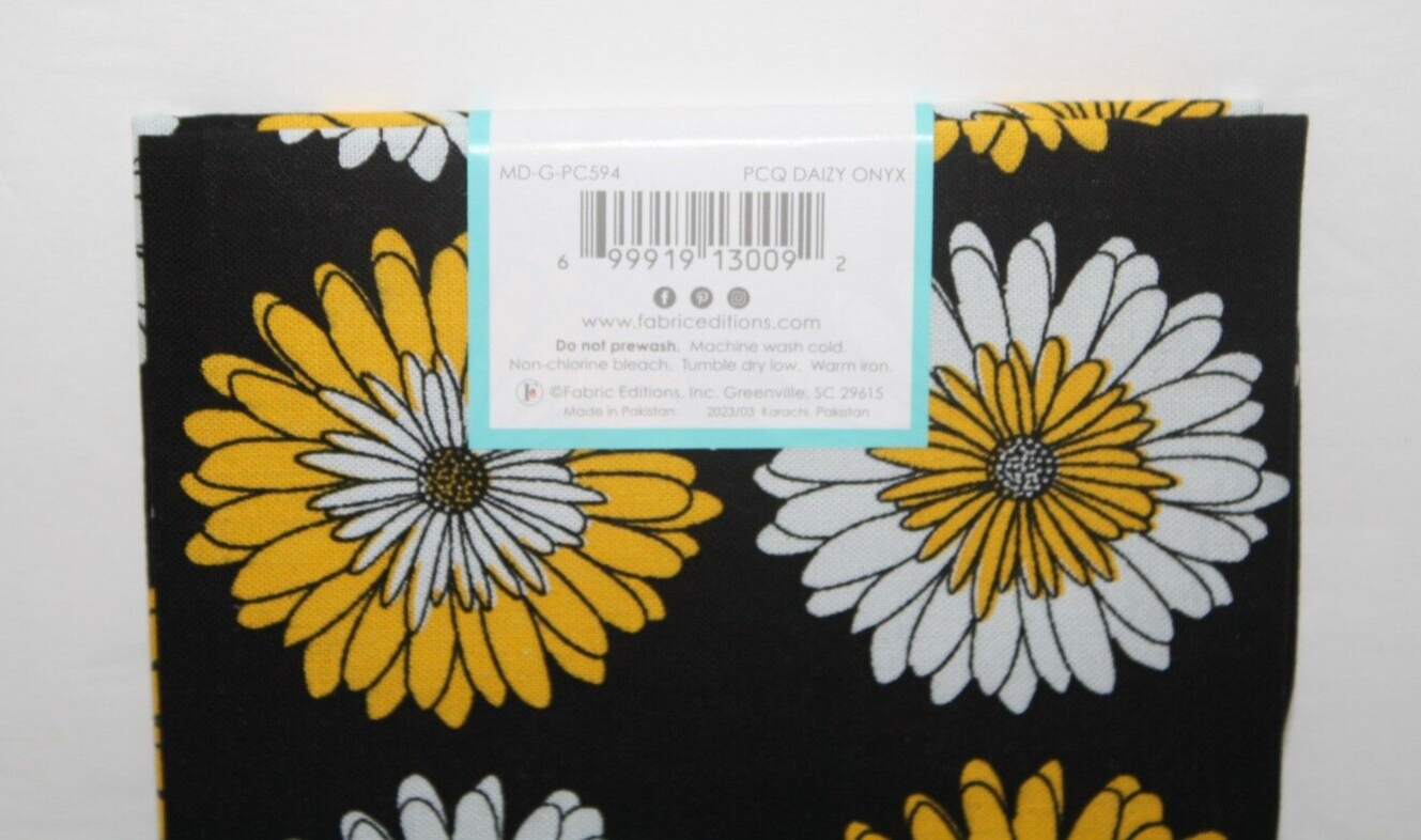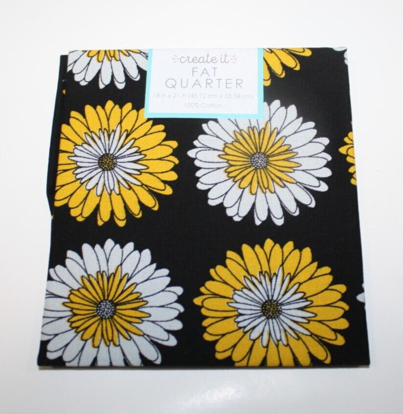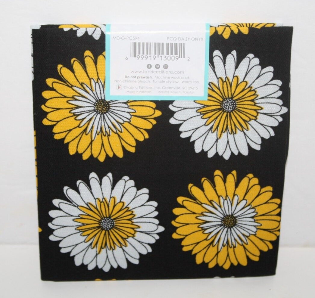 PCQ Daizy Onyx, Create It, Fat Quarter, Cotton Fabric, Daisy Yellow, White and Black Material, New in package