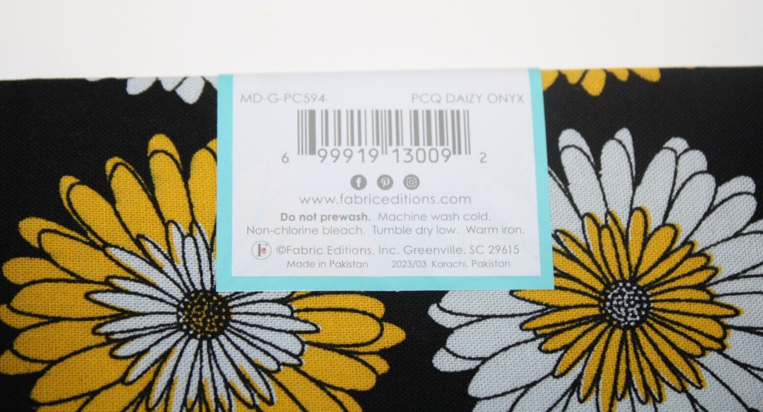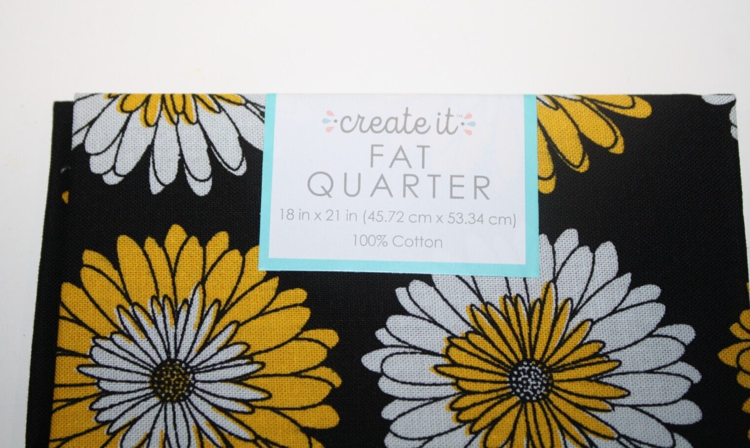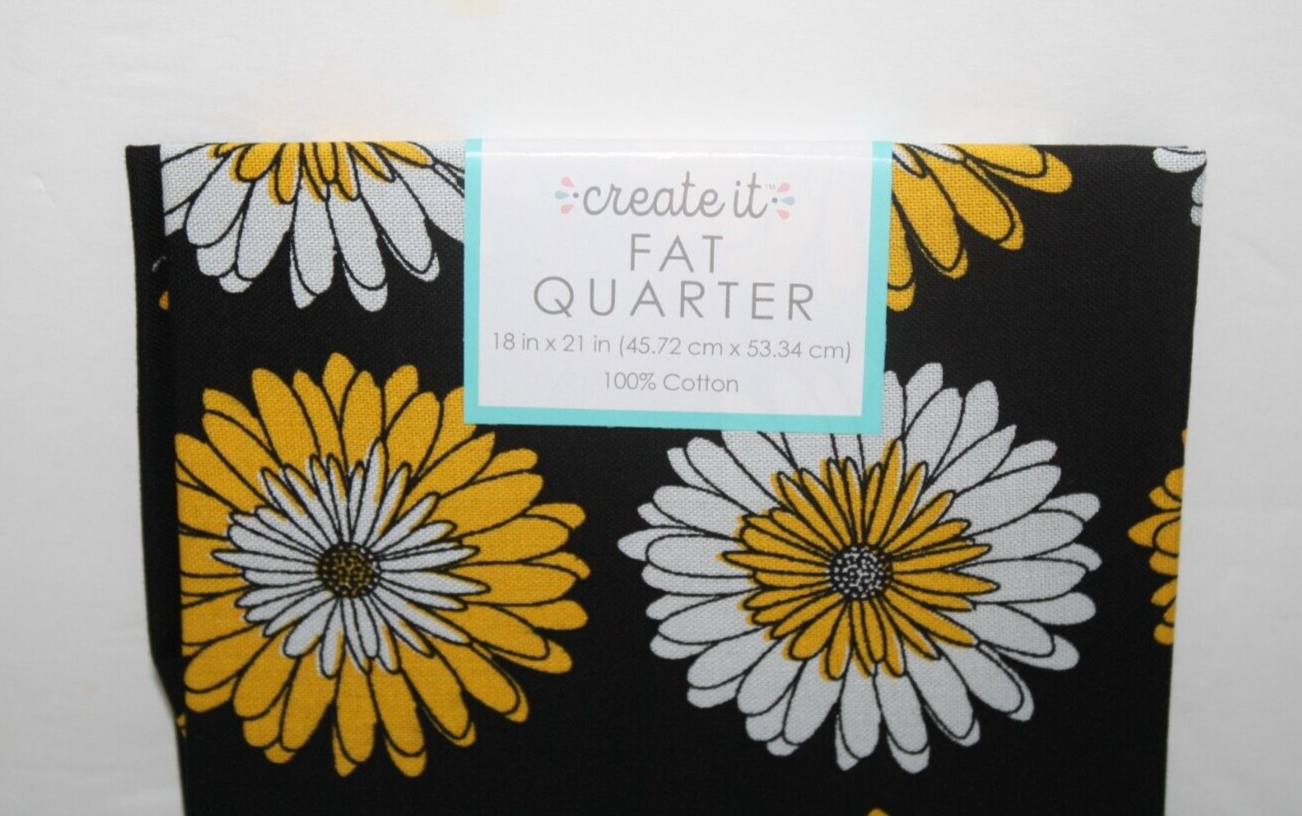 PCQ Daizy Onyx, Create It, Fat Quarter, Cotton Fabric, Daisy Yellow, White and Black Material, New in package