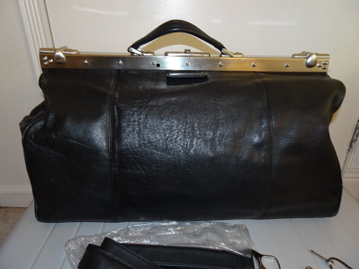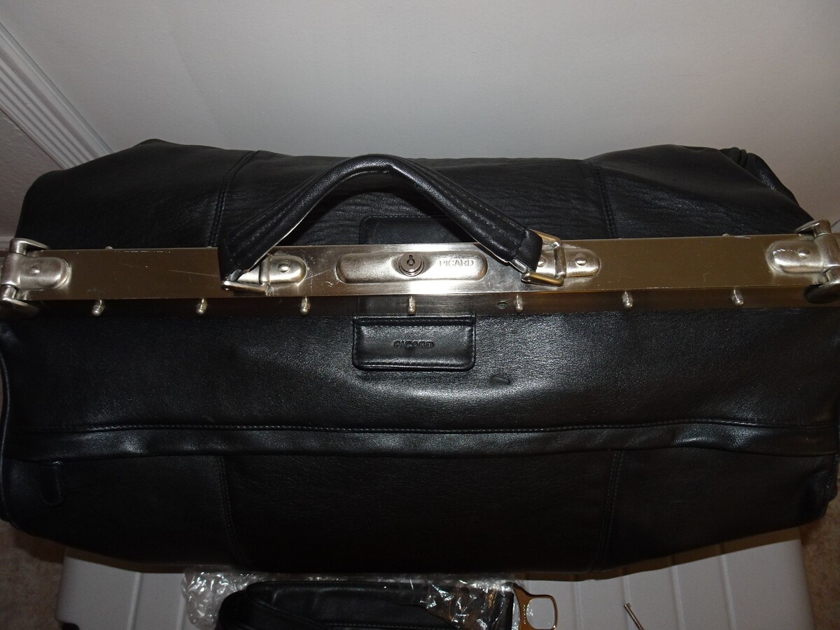 - PICARD Leather Doctor Style Travel Duffel Bag with Shoulder Strap and Keys BLACK
