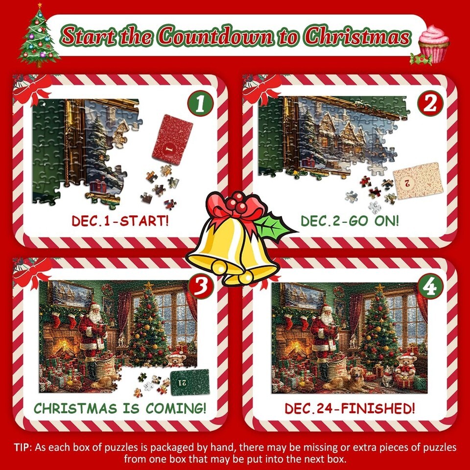 Merry Christmas:Celebrate the season with our christmas advent puzzle! Open a box daily from December 1st to assemble christmas puzzle. By Christmas Eve, watch the full festive image come together, making the countdown to Christmas even more magical