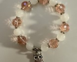 - PINK Faceted Bead Stretch Bracelet with White Gemstone Beads & Silver Owl Charm