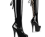 - PLEASER DELIGHT-2029 Women's Black 6" Heel Platform Knee High W/ Back Lace Boots