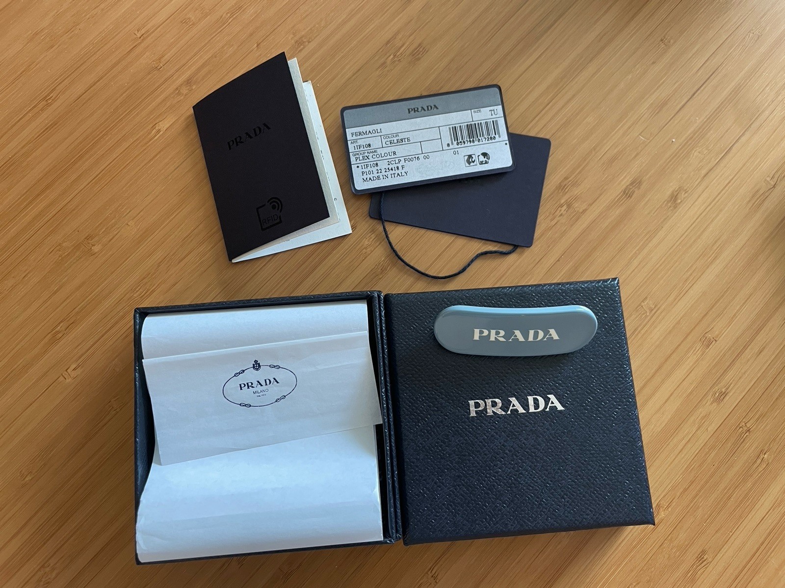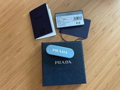 - PRADA Logo Hair Clip Blue Gold Metal Italy with Box