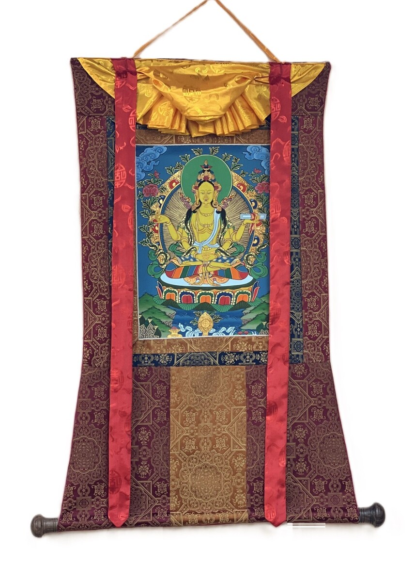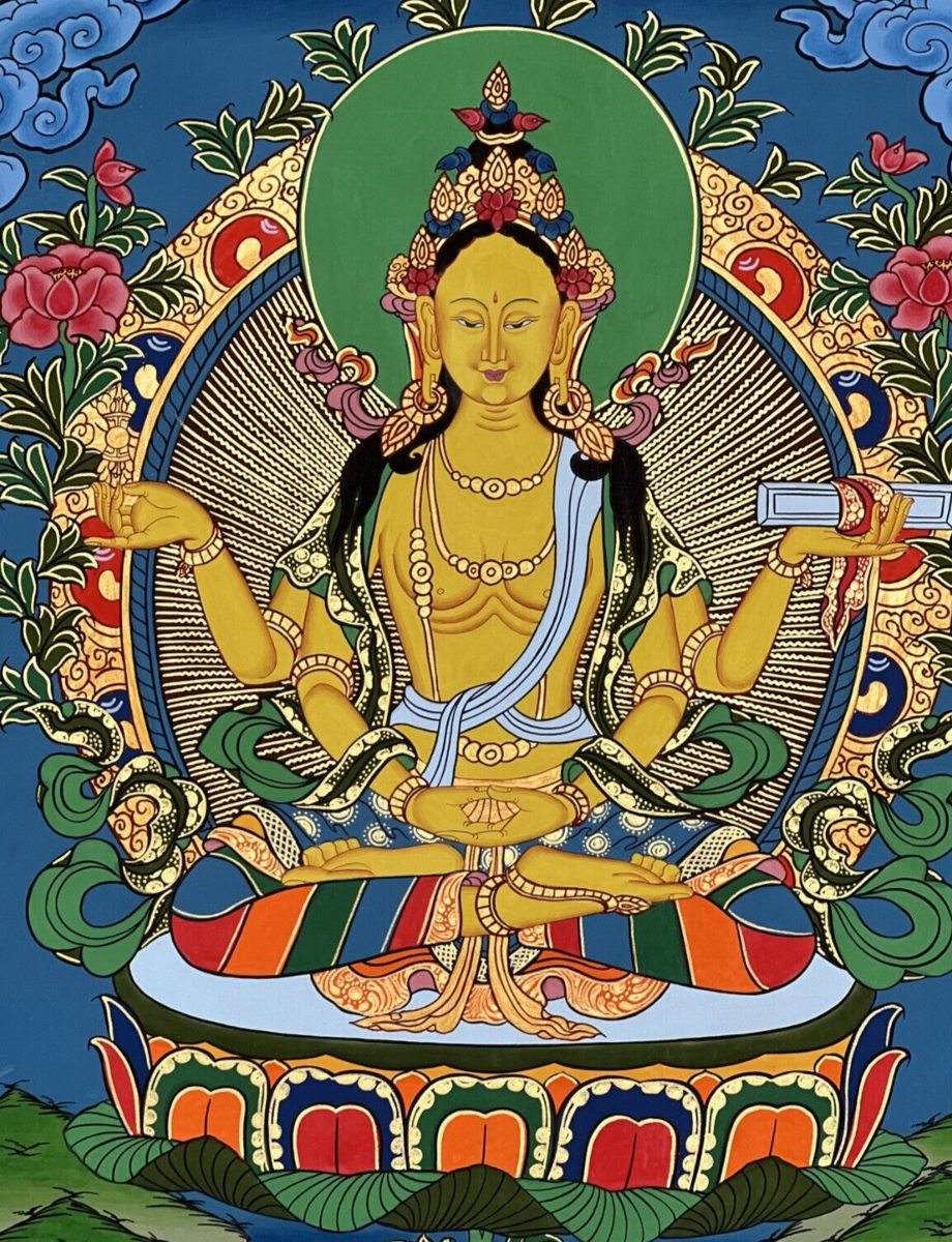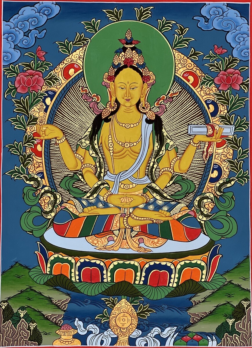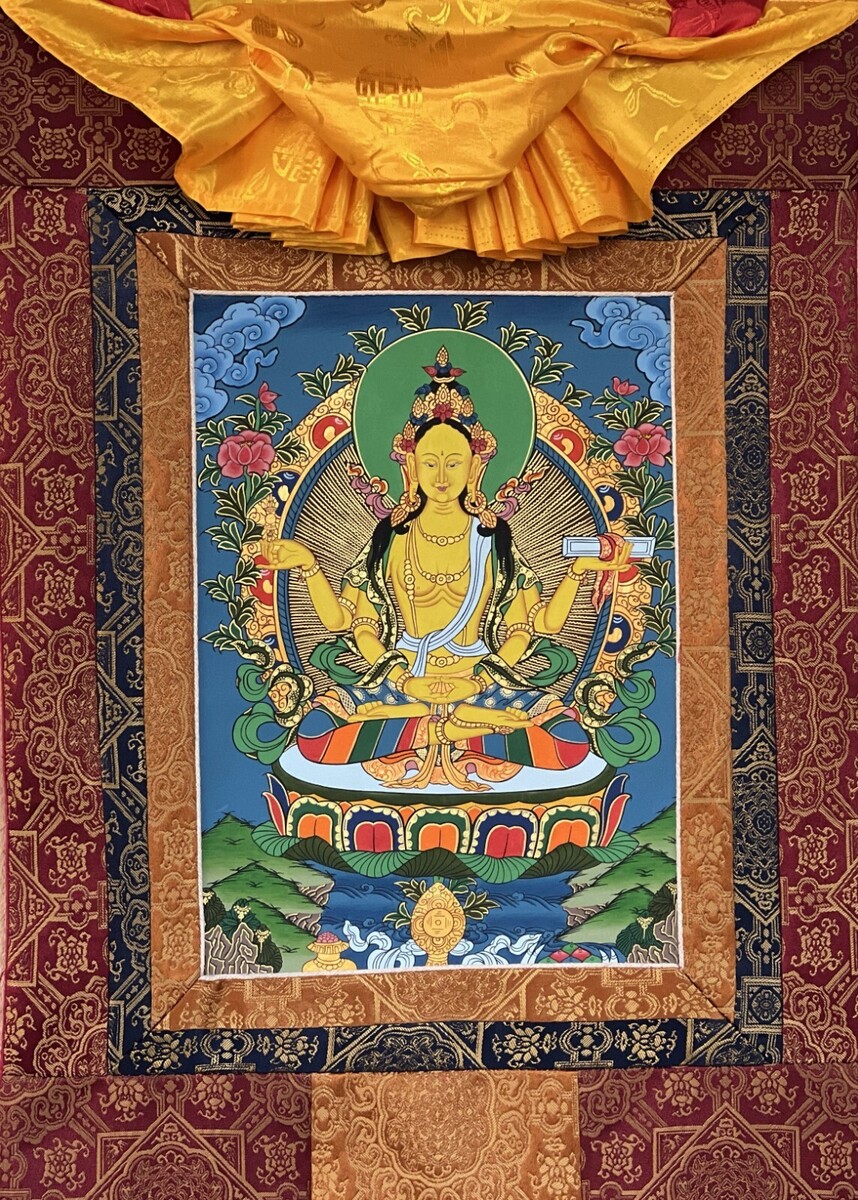 - PRAJNAPARAMITA-PERFECT WISDOM ORIGINAL TIBETAN THANGKA PAINTING WITH SILK BORDER